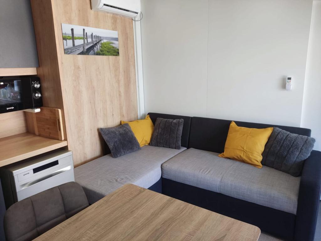 Mobilne hišice, Kamp Dalmacija, Privlaka Hiše za 4 in 6 oseb. Oddaljenost od plaže 50–150 m V bližini Nina – 4 km in Zadra – 20 km Oglejte si na Google Zemljevidih: https://maps.app.goo.gl/bk4oYG2X6VjNJgyf8?g_st=ac Kaj vas čaka v hišicah? ️ Popolnoma opremljene in klimatizirane ️ Smart TV (Netflix, IPTV) + Wi-Fi ️ Pomivalni stroj, žar, zasebno parkirišče