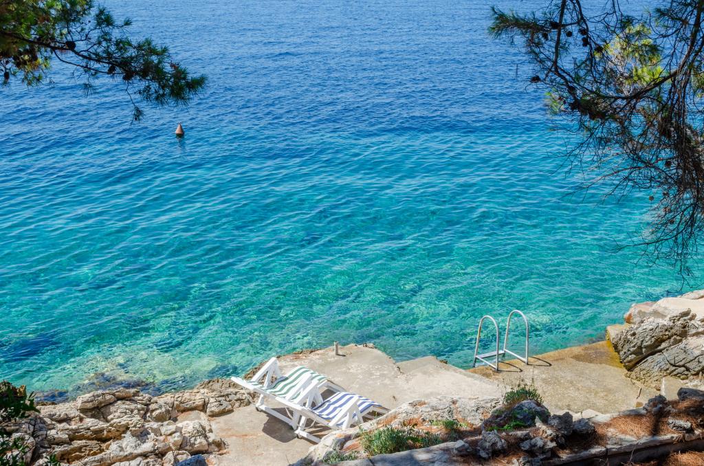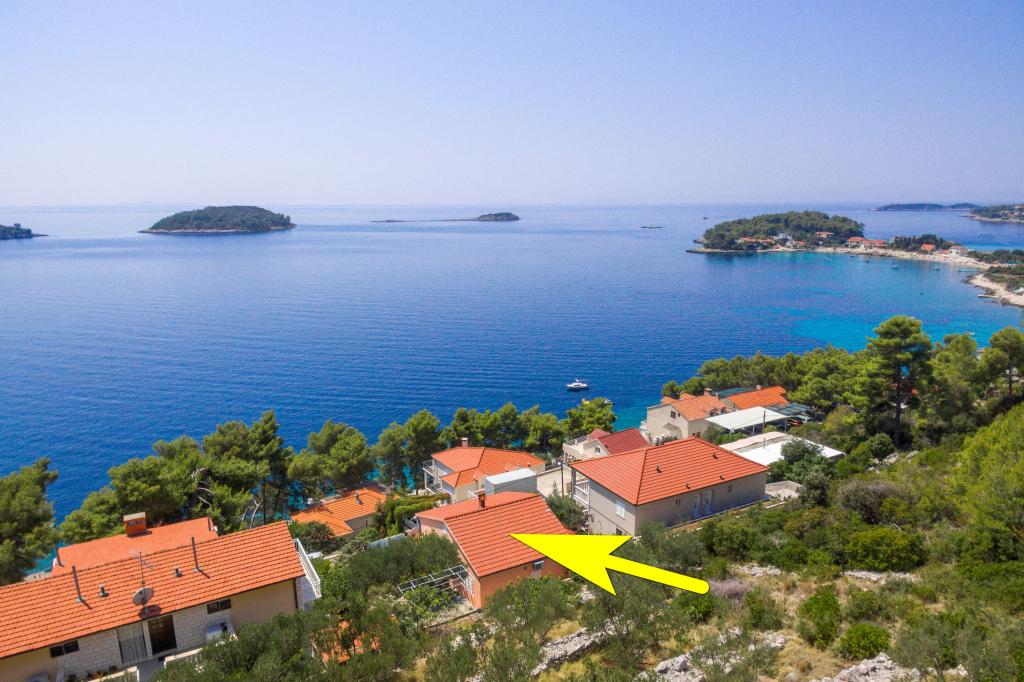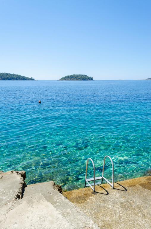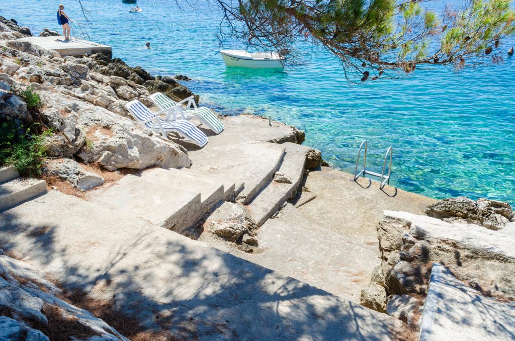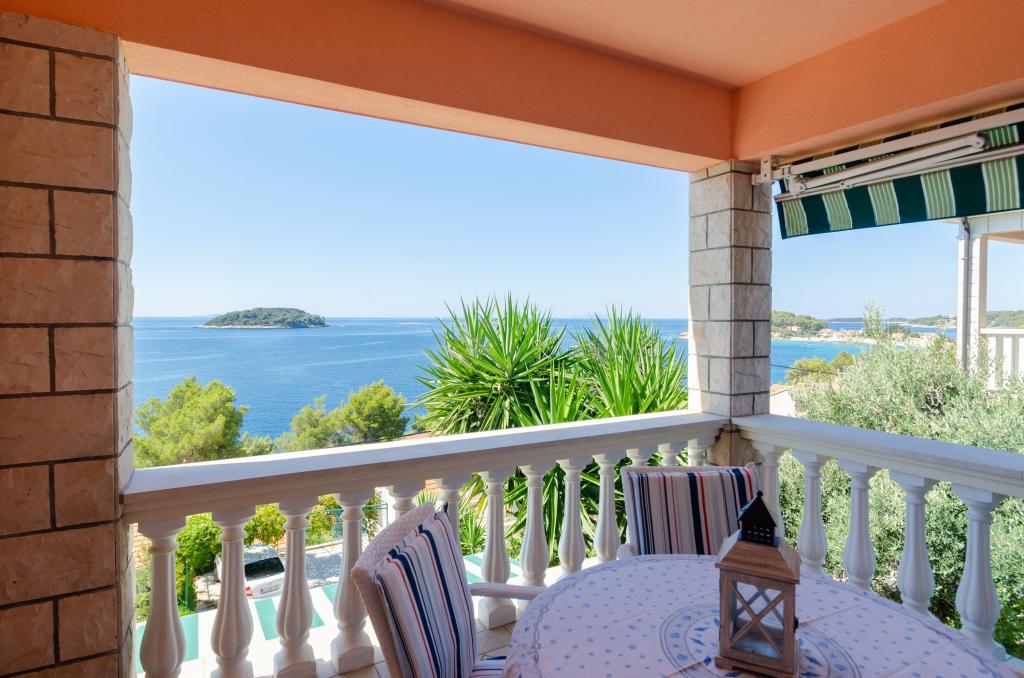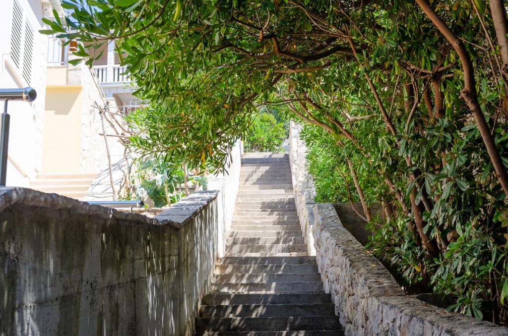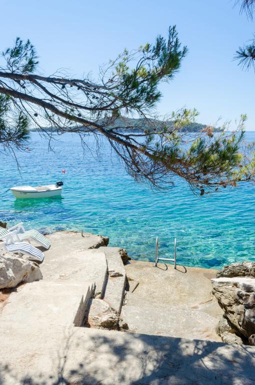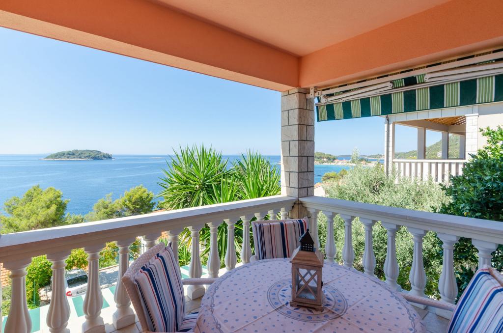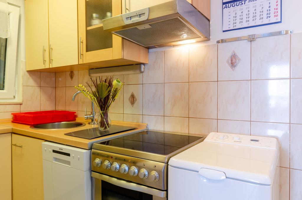 Apartma v družinski hiši, orientacije sever-jug, 30 m od morja, nahaja se v prvem nadstropju in obsega dve spalnici, dnevno sobo/jedilnico s kuhinjo, manjšo garderobo, kopalnico/wc in teraso. s pogledom na morje od 12m2 V bližini apartmaja je trgovina z živili, do centra Prižbe pa se zlahka sprehodite, cca 400 m do vseh ostalih vsebin.