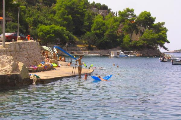 Naša nastanitev, ugnezdena v mirnem zalivu, ponuja miren oddih, obdan z neokrnjeno naravno lepoto. Odkrijte očarljive, dobro vzdrževane plaže v bližini, vključno z javno plažo (betonske plošče) s toboganom, oddaljeno le 300 metrov, in prodnato plažo, primerno za otroke, oddaljeno 100 metrov od vašega praga. Raziščite obilico čudovitih zalivov, plaž in otokov v neposredni bližini, ki so idealni za enodnevne izlete z najemom čolna. Potopite se v očarljiv podvodni svet z odličnimi potapljaškimi lokacijami v bližini. Vpišite se v šolo jadranja na deski ali se podajte na potapljaške dogodivščine v lokalnih centrih. Za ljubitelje aktivnosti na prostem so na voljo bližnje kolesarske in pohodniške poti.