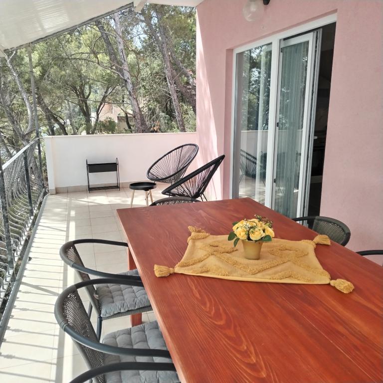 V celoti odpremljeni apartmaji v mirnem mestu Prižba. Nahajajo se v 1. vrsti do morja. Možni organizirani izleti v našo konobo ter nakup domačega oljčnega olja in vina. Dragi gostje, dobrodošli v naši nastanitvi!