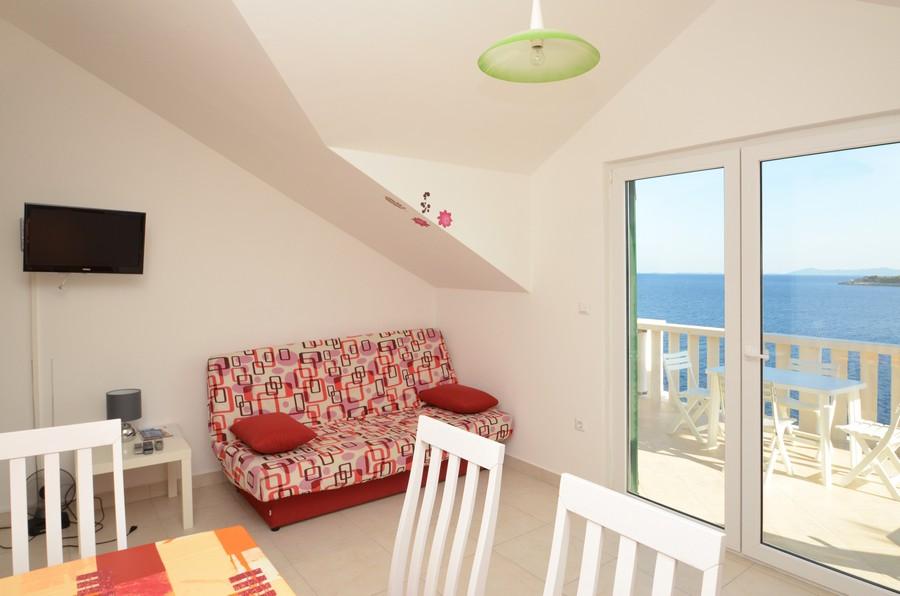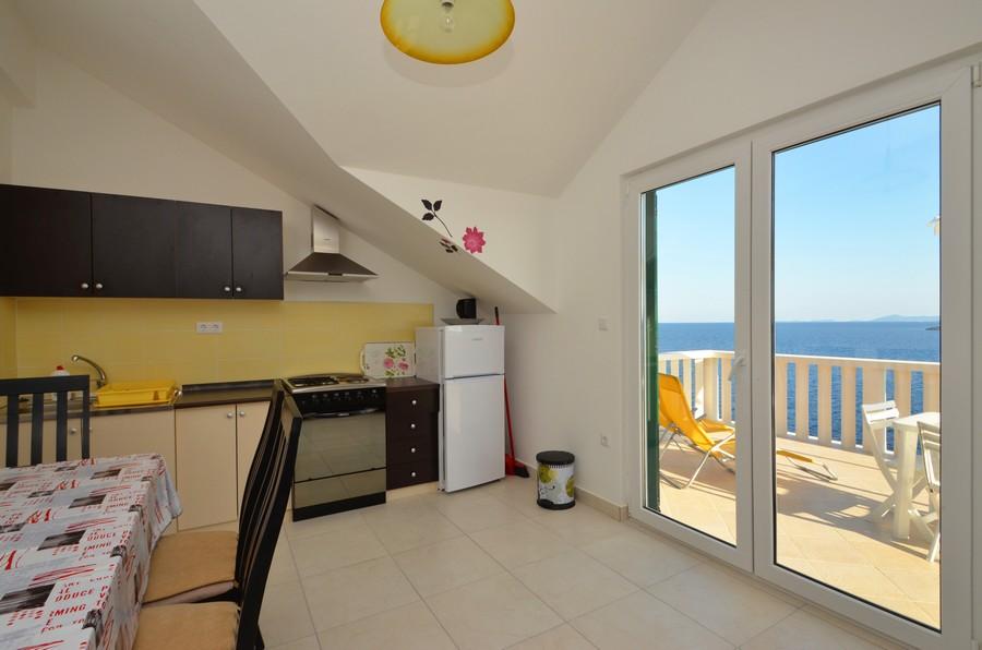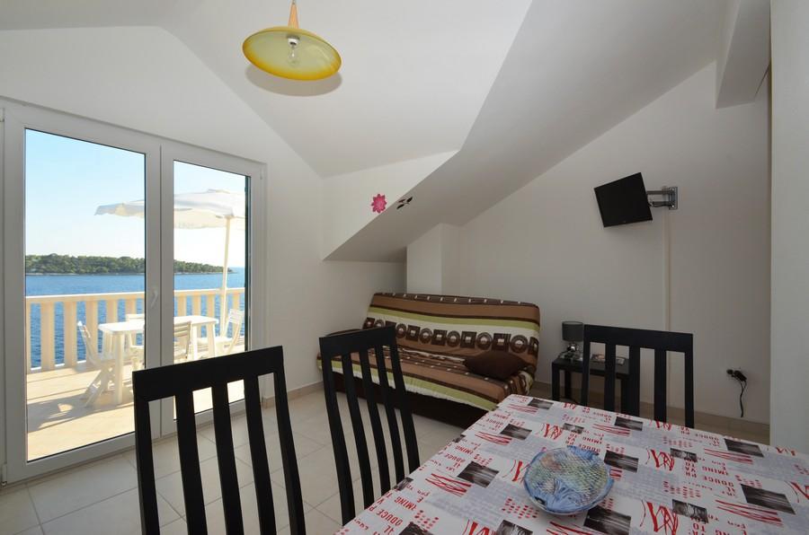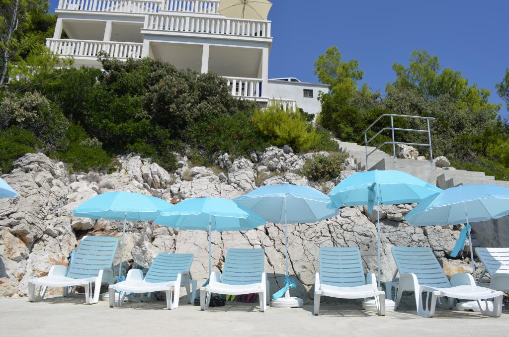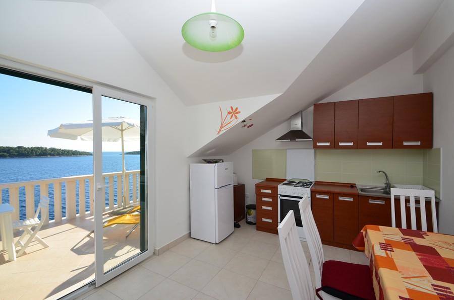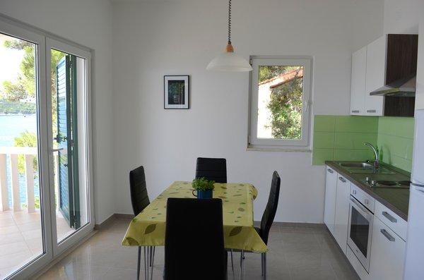 Hiša se nahaja ob morju v mirnem kraju. Apartmaji so novi in dobro opremljeni. Pred hišo je veliko parkirišče, brezplačno in udobno za vse naše goste. Vsak apartma ima svojo teraso s pogledom na morje in otočke. V bližini sta dve zasebni plaži z brezplačnimi senčniki in ležalniki, šola potapljanja, šola jadranja, agencija za izposojo čolnov, moped, kanu, različne restavracije, čudovite pohodniške in kolesarske poti.