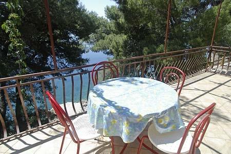 2 popolnoma opremljeni apartmaji v hiši za dopust, vsaka na ločenem nadstropju. Hiša se nahaja tik ob morju, obkrožen z borovci. Od zasebne plaže boste potrebovali le nekaj korakov. V ospredju je velika terasa s pogledom na morje in okoliške otoke. Parkirišče je na ulici, nad hišo. Prometa na lokalni cesti je nizka intenzivnost, tako da ne moti prijetno tišino in zvoki narave in morja. 5 minut hoje od hiše, na majhnem slikovitem polotoku, je čudovita prodnata plaža v neposredni bližini je restavracija, supermarket in potapljaški center. Poleg tega, da je najem opreme za potapljanje in seveda, da je možno najeti jadrnico za solo vožnji, skuter ali kajakom. Za vse tiste, ki se želijo preizkusiti mir, čas mimo počasneje, zrak opojnih in sproščujoč vonj borovcev in kristalno čistim morjem, želimo toplo dobrodošlico. Uživajte ta košček nebes!