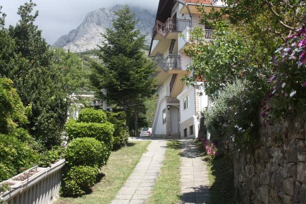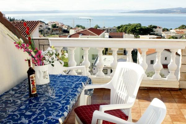 Dvosobno stanovanje za štiri ali pet oseb, popolnoma opremljeno in opremljeno. Dve spalnici imata dve postelji in možno je uporabljati dodatno ležišče. Kuhinja, jedilnica, dnevna soba, kopalnica, terasa s čudovitim pogledom na morje in planino Biokovo. Stanovanje se nahaja v tretjem nadstropju. Pred hišo je vrt in žar na voljo vsem gostom za uporabo. Objekt je od plaže in centra Promajne kratek sprehod. Vsi drugi potrebni objekti so v neposredni bližini.