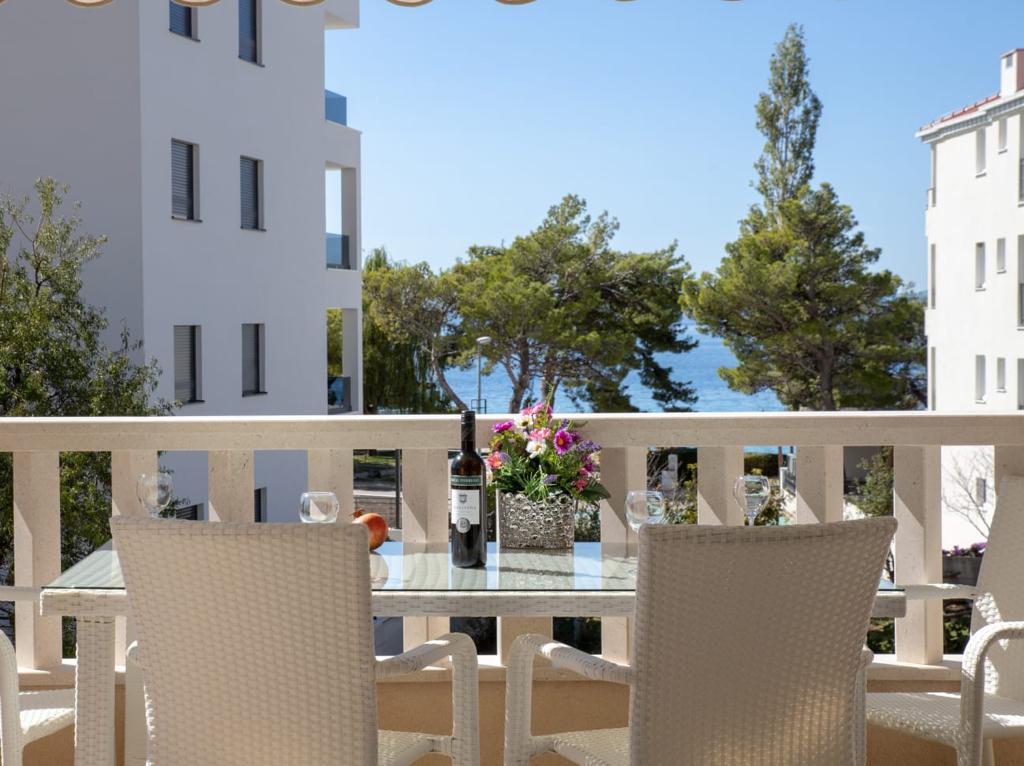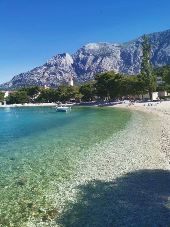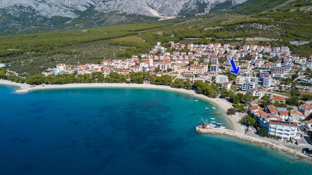 Apartma "Krissi" se nahaja v Promajni. Le 50 m stran od morja in čudovite prodnate plaže, bogate z naravno senco, tržnico, restavracijami in kavarnami. Z Baško Vodo je povezan s sprehajališčem skozi čudovit borov gozd. Makarska je oddaljena 6 km. Apartma Krissi (2+2) je popolnoma opremljen in vsebuje 2 spalnici, dnevno sobo s kuhinjo s pomivalnim strojem, hladilnikom, pralnim strojem, sefom, TV, WIFI/internetom, kopalnico s tušem in sušilcem za lase, balkon/ložo s pogledom na morje.