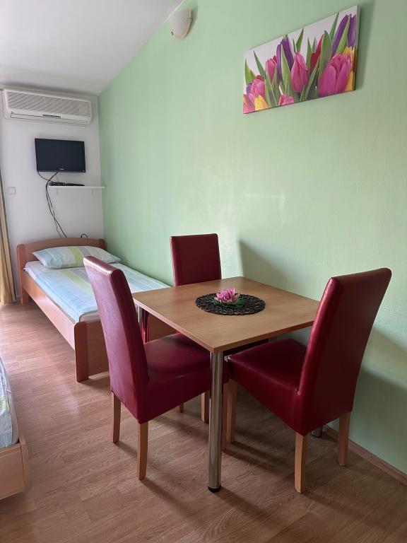 Uživajte poletne počitnice v čudovitem mestecu Krvavica, le nekaj minut vožnje od Makarske. Naš popolnoma opremljen apartma se nahaja v mirnem predelu, nedaleč od plaže, idealen za družine in pare. Apartma ima kuhinjo, klimatsko napravo, Wi-Fi, balkon z razgledom in varovano parkirno mesto. Rezervirajte pravočasno in preživite nepozabne počitnice na Jadranu!