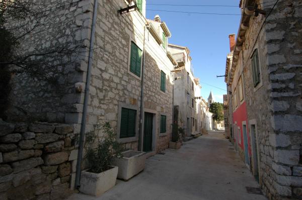 Stara kamnita hiša v osrednjem delu mesta. Notranjost obnovljena v avtohtonem slogu. Klimatizirano, s sodobnimi kopalnicami. Visoko podstrešje pohvaljuje toplino lesene strehe. Majhen balkon in terasa za posedanje in srkanje kave. Trgovina, pošta in več restavracij so v bližini, kamnita plaža pa je nekaj minut hoje.