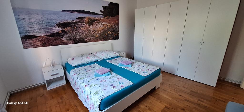 Odkrijte pravo razkošje v našem Art apartmaju v Pulju, ki se nahaja v čudoviti Istri. Ta prostoren apartma lahko sprejme do 6 gostov na 100 kvadratnih metrih bivalne površine. Sestavljen je iz 2 spalnic in 2 kopalnic, popolnoma zasnovanih za vaše udobje in sprostitev. Pritličje hiše meri 100 m2 + 29 m2 balkona + 600 m2 dvorišča s trampolinom. Gostje imajo dostop do kuhinje, jedilnice, dnevne sobe, hodnika, 2 spalnic z zakonsko posteljo + dodatnim ležiščem v vsaki sobi. Velika kopalnica s kadjo. Majhna kopalnica s tušem. Velika terasa velikosti 20 m2. Pogled proti gozdu.