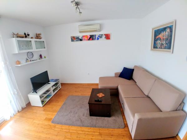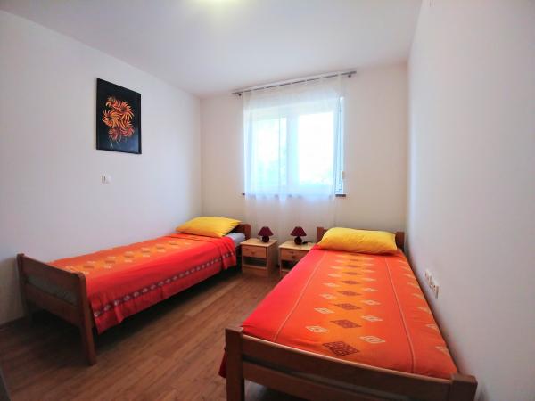 Turistična taksa je vključena v ceno.Apartma velikosti 65m2 ima dve spalnici in dnevno sobo s kuhinjo. Gostje lahko postavijo svoja vozila na dveh rezerviranih parkirnih mestih. tudi za aprtmanom je majhen vrt z žarom, ki ga gostje lahko uporabljajo. Avtobusna postaja za mesto in plažo je od apartmaja oddaljena 100 m