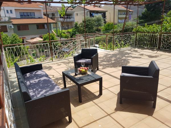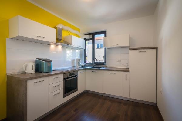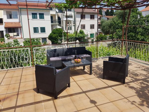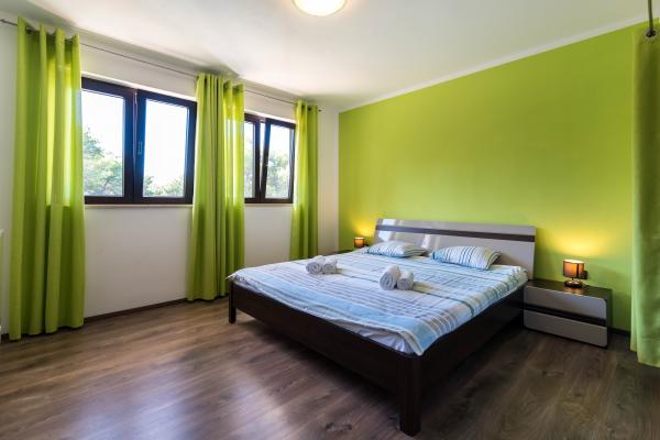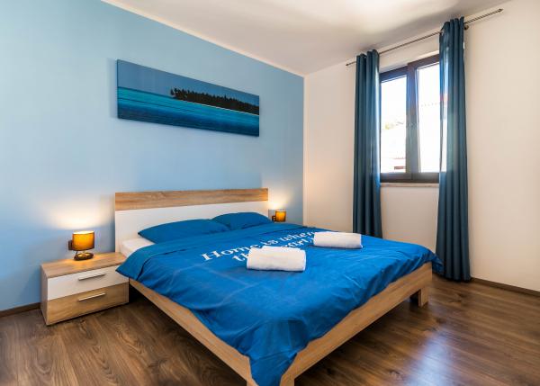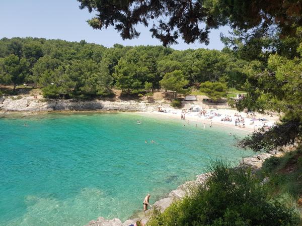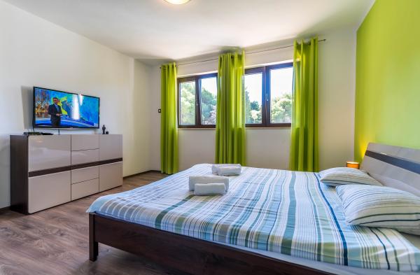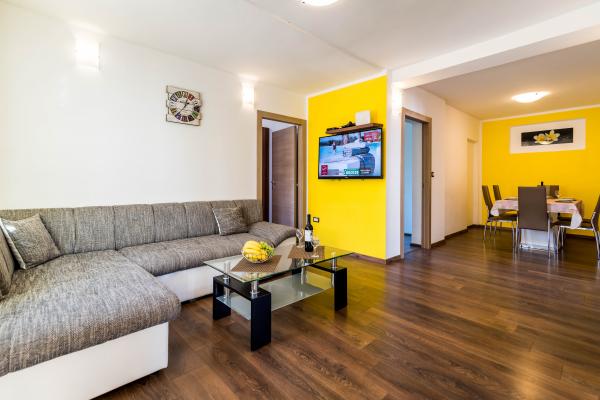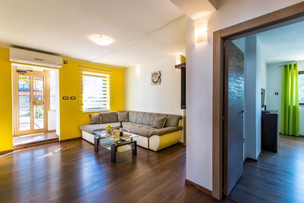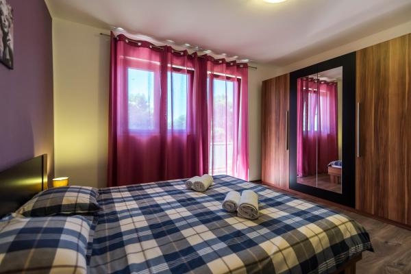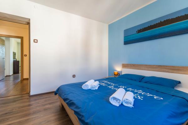 Popolnoma opremljen apartma za 6 oseb s tremi spalnicami, veliko dnevno sobo, kuhinjo in kopalnico, ter z veliko teraso le 100 metrov od ene najlepših plaž v Puli, pod stanovanjem je promenada, steza, teniška igrišča in zunanja lepota.