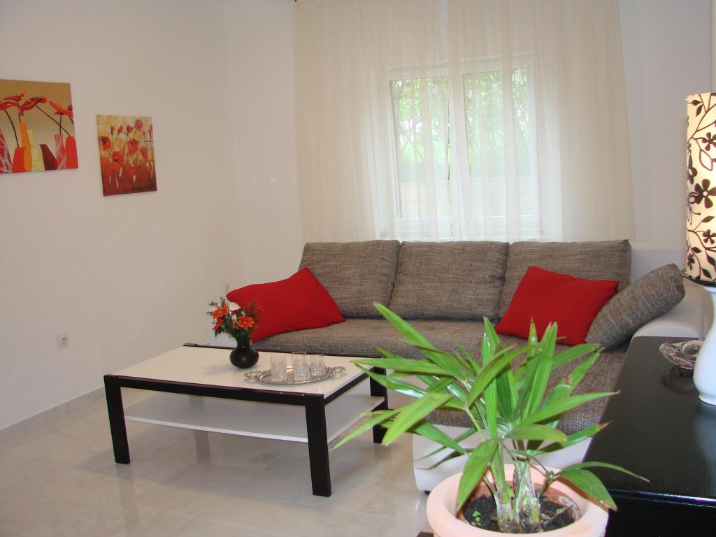 Popolnoma opremljeno stanovanje v pritličju družinske hiše z ločenim vhodom. Dve spalnici, prostorna dnevna soba, jedilnica in kuhinja ter kopalnica in drugo stranišče. Prostorno dvorišče s pokritim žarom, gugalnicami in pokritim parkirnim prostorom za dve vozili. Blizu morja in plaže. Apartma se nahaja v bližini Pule (5 km od središča mesta) s pogledom na nacionalni park Brijuni.