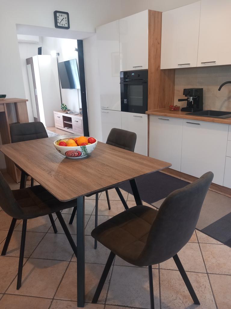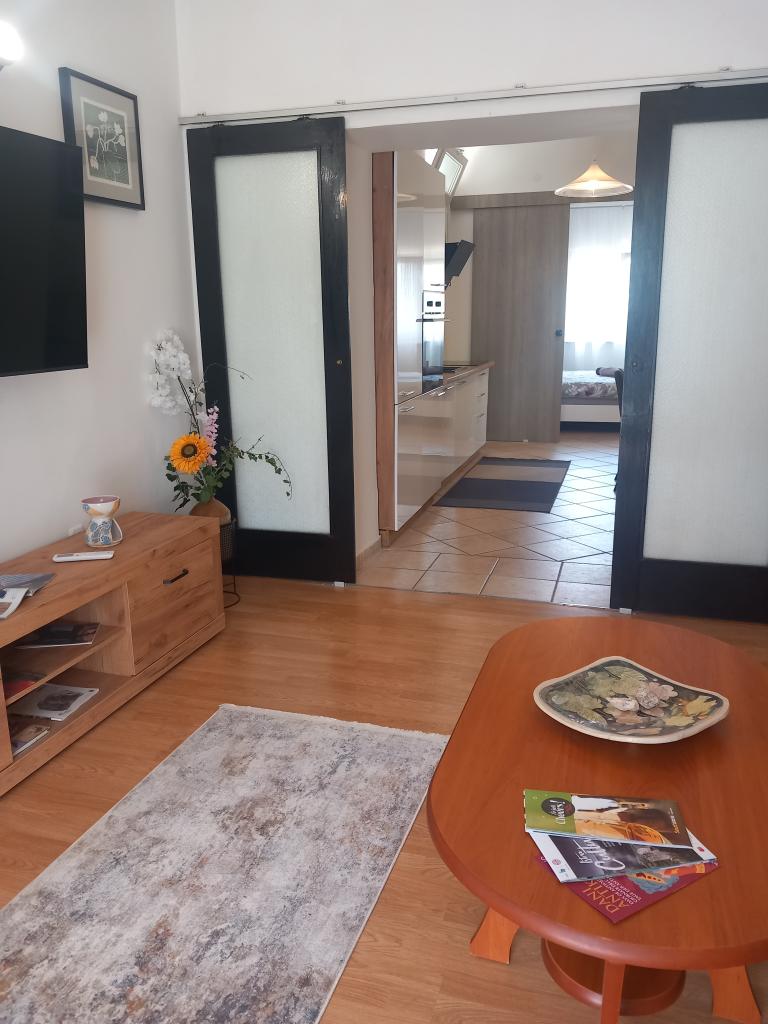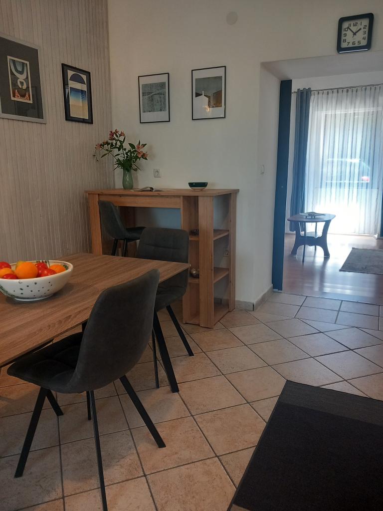 Popolnoma in moderno opremljeno stanovanje v pritličju družinske hiše v mirni ulici v bližini amfiteatra in centra /do 10 min hoje/. Postelja v spalnici, velikosti 180 x 200 cm. V dnevni sobi je kavč, ki se lahko raztegne v posteljo, velikosti 140 x 200 cm. Dostop do terase, obdane z zelenjem. Brezplačno parkiranje pred hišo. Brezplačen wi-fi. Mestne plaže so oddaljene 10 min vožnje z avtomobilom.