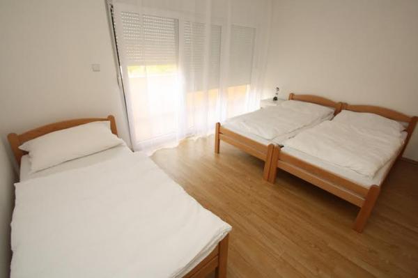 Lepa lokacija, v lepem delu Pule, Sandy Bay, so apartmaji. Popolnoma opremljeni in ponujajo velik praznik .. Apartmaji se nahajajo v južnem delu mesta Pule v vasi Sandy Cove v zasebni hiši. Apartmaji se nahajajo v minutah: 3 min vožnje od nakupovalnega centra s supermarket, mesarji, prodajalne kruha je, ribe trgi, itd .. in 50 metrov od plaže, restavracije, trgovine ... itd.Plaže imajo sončno del in del, ki je v senci borovcev. Obstajajo plaže s peskom in manjših kamnov. Večje število plaže (Vključno najbližja naše stanovanje) ima modro zastavu.U ceno je vključeno parkirno mesto v dvorišču. Apartmaji so kategorizirani s tremi zvezdicami (***). Vsi apartmaji imajo od 35,00 m2 do 65 m2 brez teraso. Apartmaji imajo Pay TV s 350 hrvaškem, slovenskem, bosanskem italijanski, nemški angleškega jezika, madžarskega programa Vključeni tudi v cijenu.Također vsi apartmaji imajo dostop do brezplačnega brezžičnega interneta.