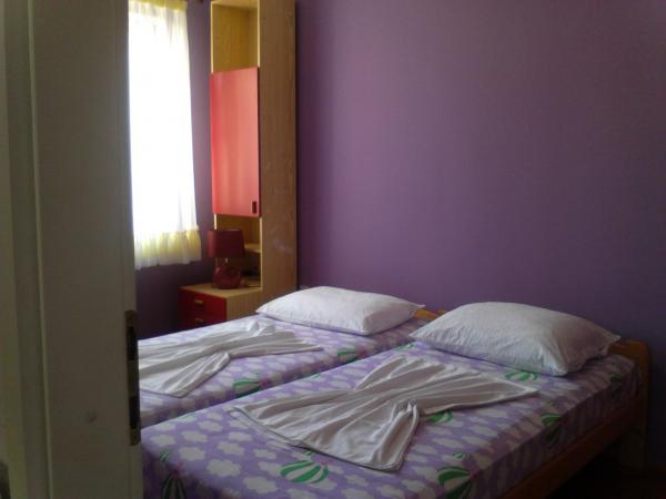 Novejša hiša s 3 apartmaji Sasha stoji na koncu ceste v stanovanjskih in turistično območje Brionih. Trgovine, restavracija, peščena plaža 400 m, center 1 km, Pula 4 km. Ograjeno, okoli 500 kvadratnih metrov zemljišča z mediteranskim rastlinjem, kiwi sadnih dreves, rož in grmičevja. Deliti na vrtu: 2 ležalnike, teraso z leseno mizo / lesene klopi, žar. Parkiranje na ulici v bližini hiše. Balkon (cca 17 kvadratnih metrov), s pohištvom in pogledom na morje. Talne obloge. Satellite TV. Centralno ogrevanje na olje. Pralni stroj, ki ga lastnik (plačilo). Opomba: Lastnik živi na zemlji. Lokalne zaračunane storitve: turistična taksa. Wash posteljnina (menjava inclusive vsakih 7 dni) Mi ponujamo eno majhno brisačo padla osebno. Pripeljite ovelike brisače. Kavcija 150 € cot višini 20 € na sobo (zahteva). Hišni ljubljenčki niso dovoljeni.