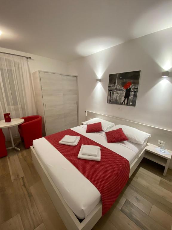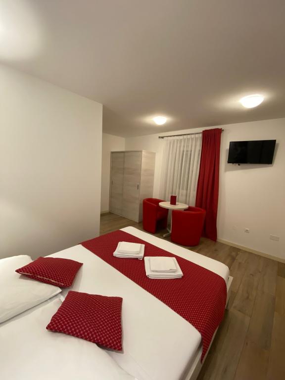 Nahajamo se v Štinjni, 3 km od centra Pulja in 800 m od plaže Hidrobaze. Sobe in apartmaji so opremljeni z vsem, kar potrebujete za prijetno bivanje: klimatsko napravo, TV, mini hladilnik, sef in sušilec za lase.