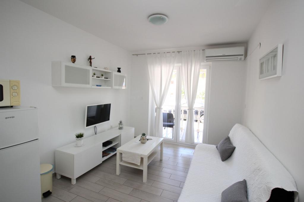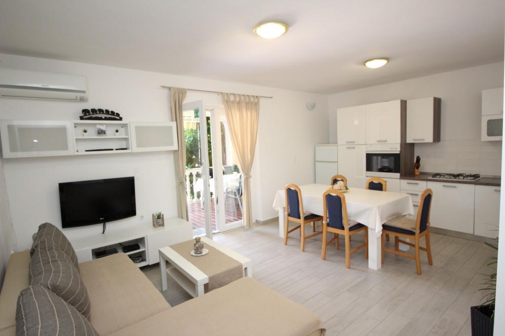 Na novo obnovljeni apartmaji se nahaja v mirni ulici, 400m od morja. Popolnoma opremljen (klima, WiFi, SAT TV). Zagotovljen parkirni prostor za stanovanje za 1 vozilo.