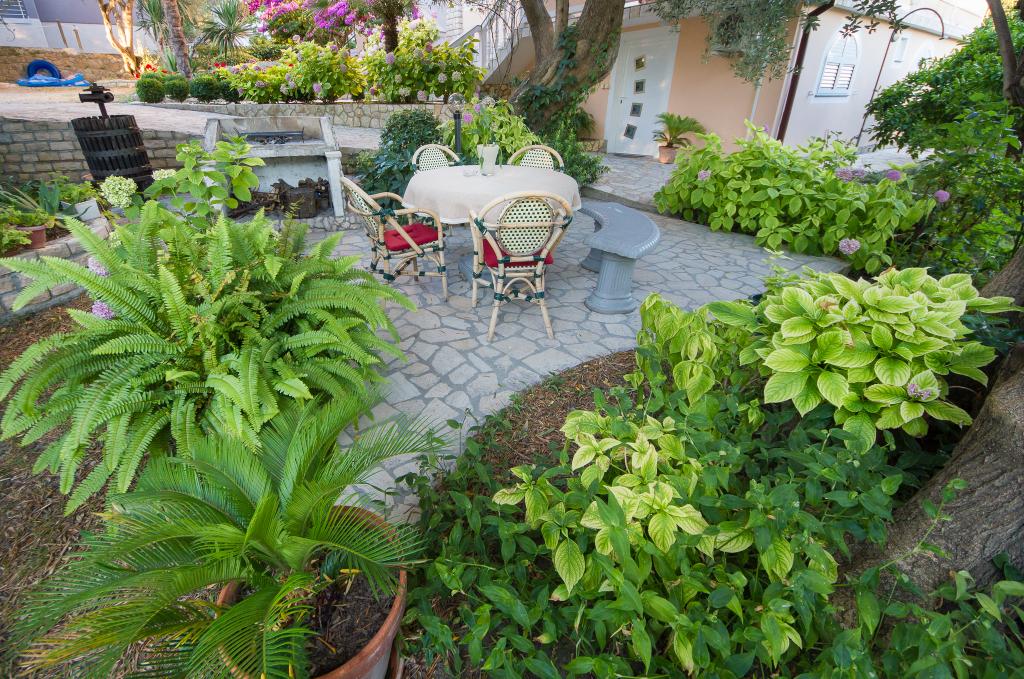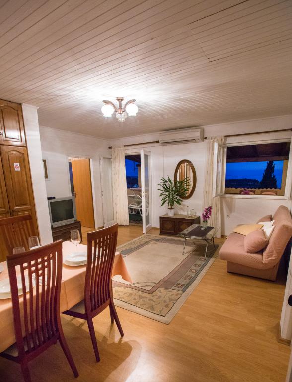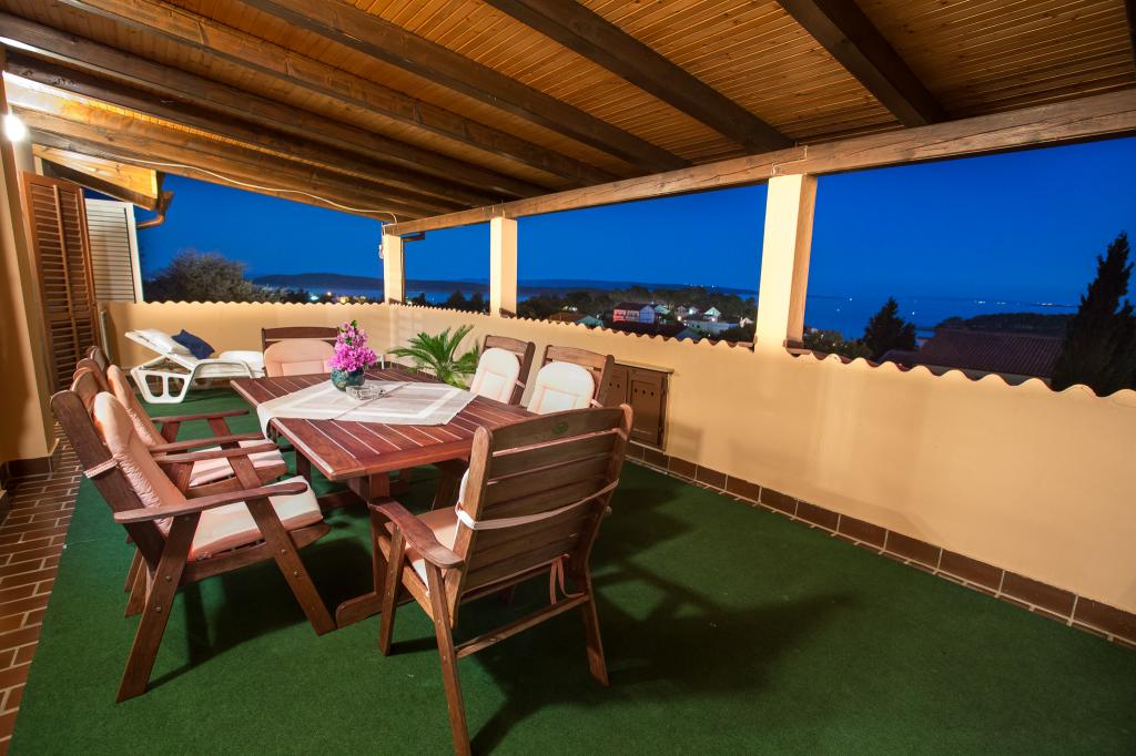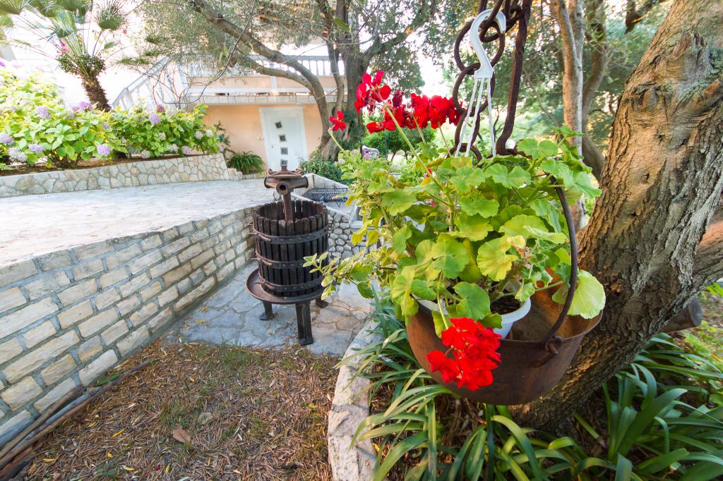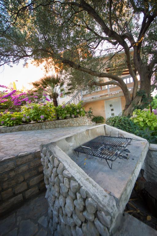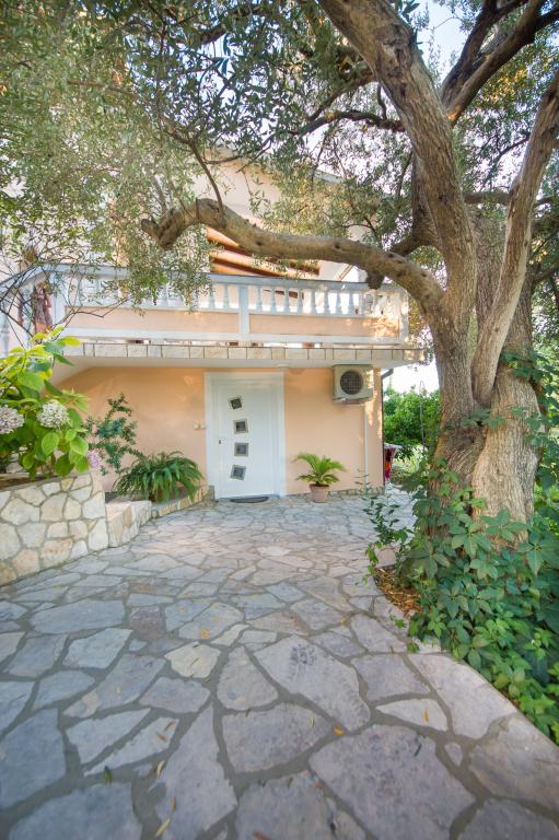 Hiša se nahaja v mirnem kraju, obkroženem s stoletnimi oljkami. Prva plaža se nahaja 200 m od naše hiše. Objekt se nahaja 10 -15 minut hoje do središča starega mestnega jedra Raba. Stanovanje je v celoti in moderno opremljeno in ga krasi velika pokrita terasa.