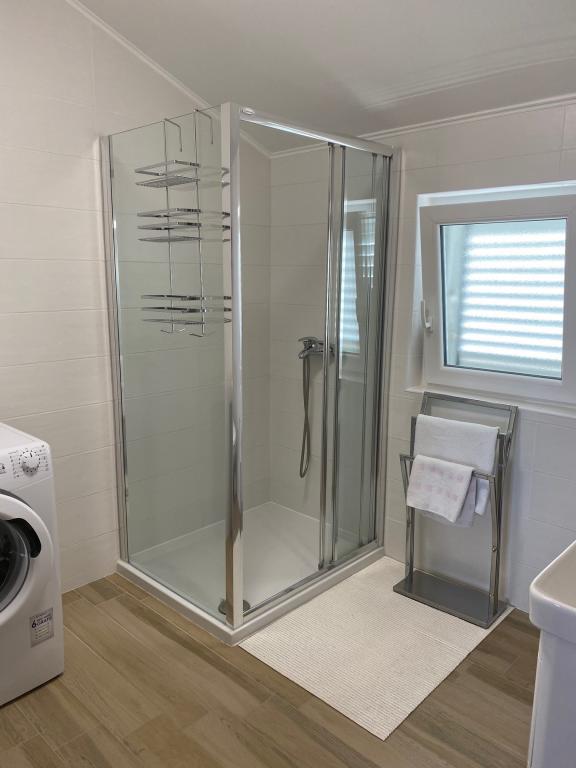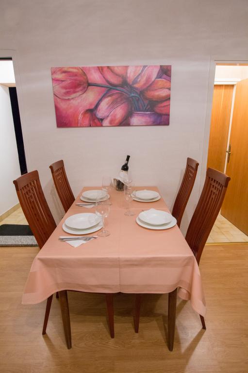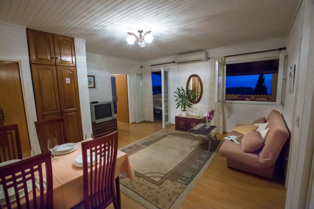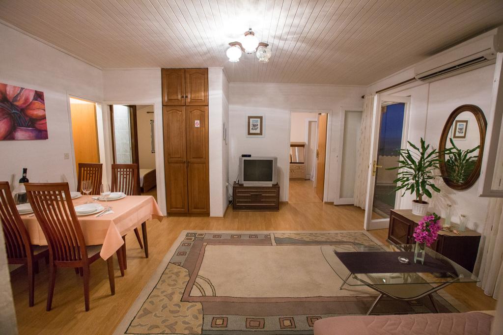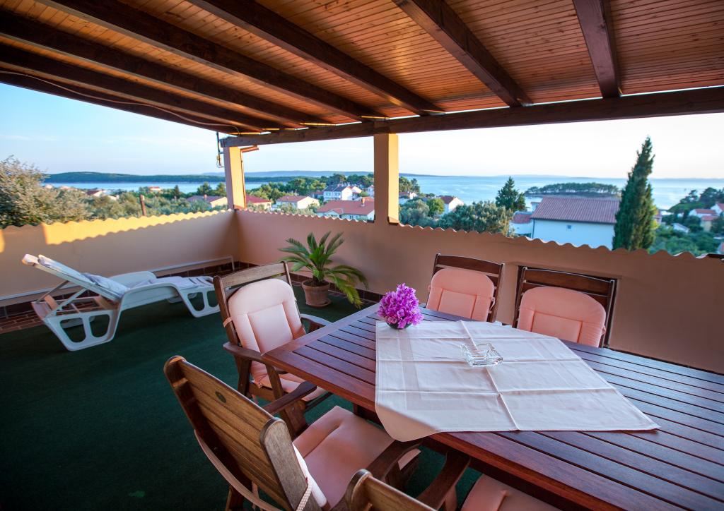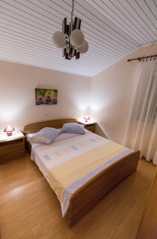 Hiša se nahaja v mirnem kraju, obkroženem s stoletnimi oljkami. Prva plaža se nahaja 200 m od naše hiše. Objekt se nahaja 10 -15 minut hoje do središča starega mestnega jedra Raba. Stanovanje je v celoti in moderno opremljeno in ga krasi velika pokrita terasa.