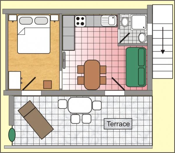 Apartma za dve osebi plus dodatno ležišče (45 m2)