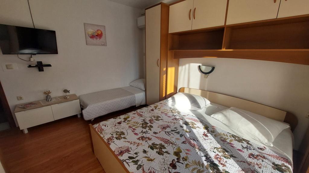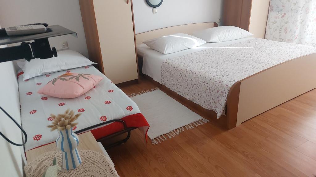 Vse je popolno! Apartma urejen, majhen balkon, primeren za 2 osebi. Parkiranje v senci. Trgovina in pekarna 2 min hoje. Gospa Sanja in njena mama, zelo prijazni, smo dvakrat dobili domači paradižnik in papriko. Do centra približno 20-30 min hoje. Priporočam sprehod do tja in nazaj s čolnom za približno 15 kun na osebo do Marine 3 in od tam še 2 minuti hoje do apartmaja. Popolnoma nič za pritoževanje! Pozdravi