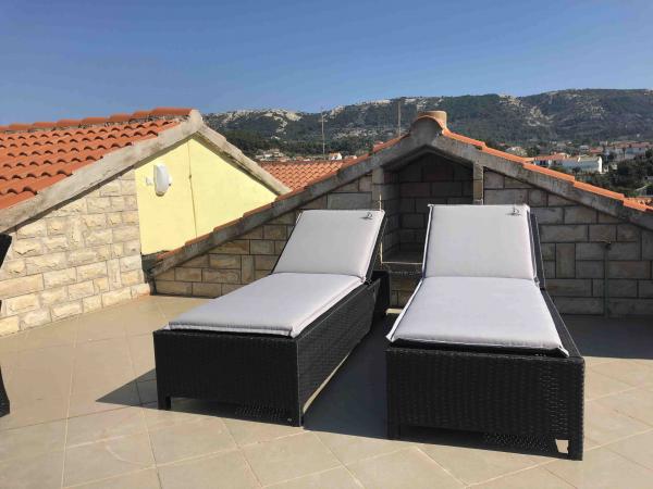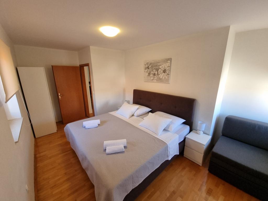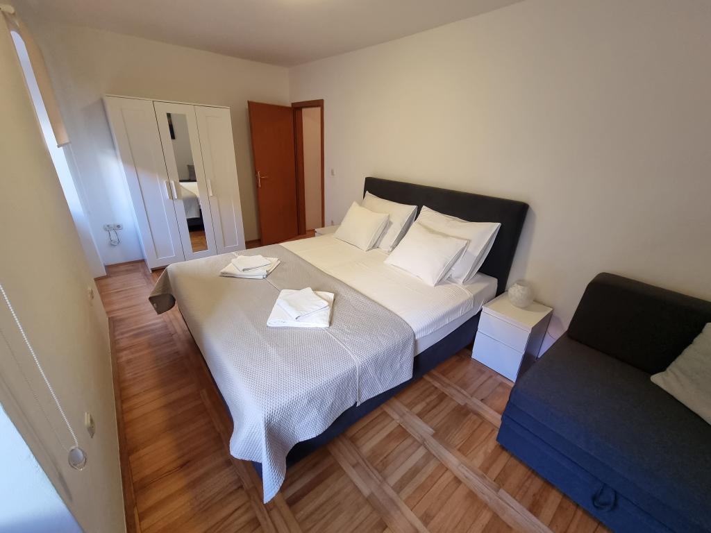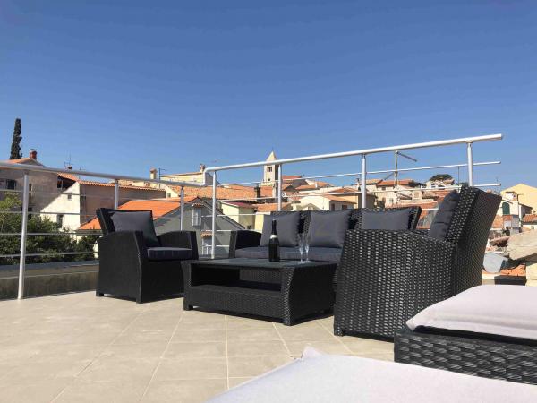 Doživite nepozabne poletne počitnice v srcu mesta Rab na otoku Rabu v naših udobnih apartmajih, ki se nahajajo v mirnem okolju starega mestnega obzidja. Navdušenja vam ne bo manjkalo, ko boste občudovali čudovit panoramski razgled s strešne terase večjega apartmaja, kjer boste uživali v neverjetnih pogledih na štiri znamenite mestne zvonike. Ne zamudite priložnosti, da uživate v bližini mestne plaže, le 2 minuti hoje od apartmaja, ali raziščite ulice in trgovine na glavni ulici, le 30 metrov od nepremičnine. In če želite poskusiti lokalno hrano, je restavracija le 10 metrov stran od apartmaja! Z brezplačnim parkiranjem za vse goste na mestnem parkirišču, ki se nahaja ob obali le nekaj minut hoje od apartmaja, vam ne bo treba skrbeti za nič. Rezervirajte zdaj in doživite nepozabne poletne počitnice v srcu mesta Rab na otoku Rab!