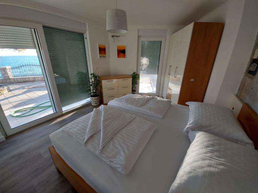 Apartmaji tik ob morju, lepa stanovanja, čudovita pot do mesta Rab , cene v trgovinah primerljive z Slovenijo...