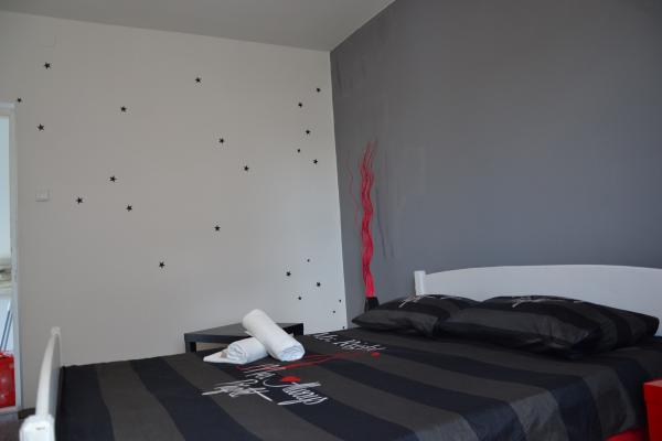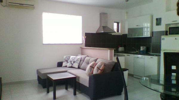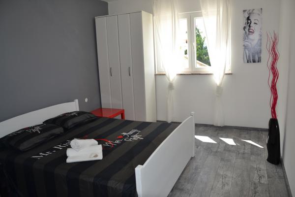 Stanovanje je idealno se nahaja na hribu s pogledom na zaliv. Lepo in prostorno stanovanje se nahaja v hiši s popolno ograjenem dvorišču. Apartma se nahaja v 5 min hoje od plaže in centra Rabca, trgovina, ki se nahaja na razdalji 50 m.