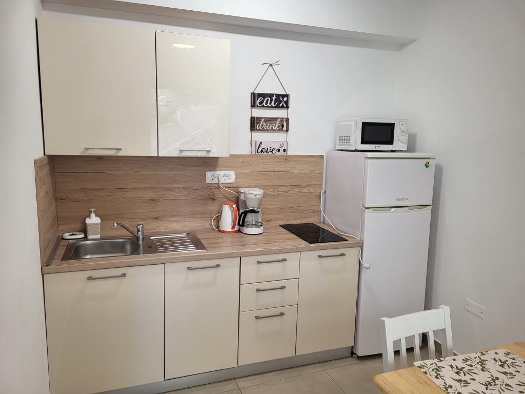 Zelo tiha in udobna namestitev. Lastnica je zelo prijetna in ustrežljiva gospa. Apartma je čist, lepo opremljen in popolnoma opremljen. Do plaže je kratek sprehod, tako da se lahko kar v kopalkah odpravite tja. Trgovina je oddaljena cca 5-10 minut hoje, tik pod apartmajem sta dve restavraciji, ena po ugodnih cenah, druga bolj luksuzna. Parkiranje je malo bolj zapleteno, a ni grozno. Radi bi se še vrnili sem.