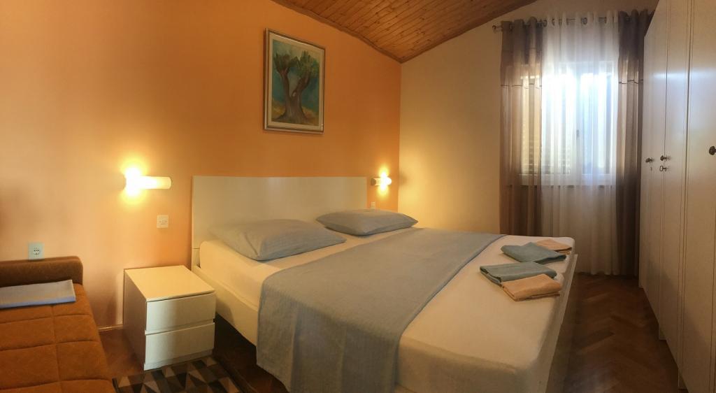 Gostitelja par je bil zelo prijazen in ustrežljiv, ob prihodu sta naju pričakala s svežim pecivom in hladnimi pijačami. Namestitev je popolna, ogromna terasa ponuja čudovit razgled na morje. Kuhinja je dobro opremljena, ločene sobe pa so vsem nudile zasebnost. Namestitev je zelo ugodna za denar, edina slabost je strm dolg sprehod po gorskem pobočju. Uživali smo v plavanju v belih skalnatih zalivih s čisto modro vodo. Do bližnjih plaž se lahko pride z avtomobilom, manj pa peš, v približno 20–25 minutah. Večji supermarketi so v sosednjem mestu, manjše trgovine pa najdete tudi v Rabcu. Obalna peš ulica ima zelo dobre restavracije, sladoledarne in majhne trgovine. Priporočamo jo aktivnim družinam in skupinam prijateljev. Z veseljem bi se vrnili.