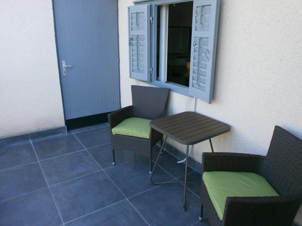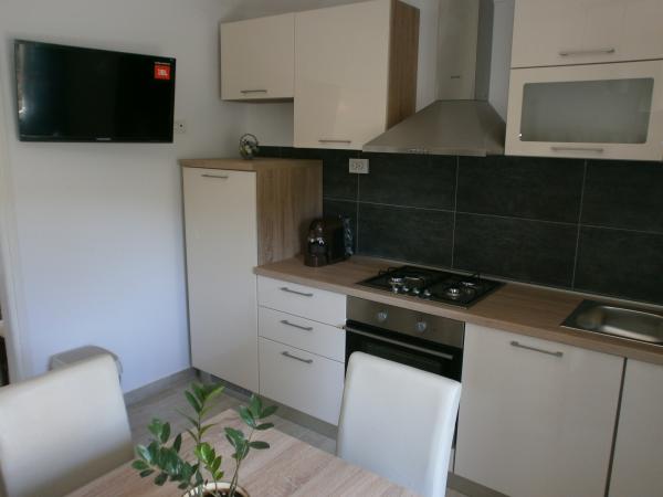 V majhnem mestu Raslina, v bližini Šibenika, je ta stavba z dvema novih stanovanj. Nacionalni park Krka je 30 minut vožnje. V bližini plaže je približno 50 metrov in centra, na katero je 5 minut hoje. Ena je za dve osebi z dodatnim ležiščem, druga pa je studio apartma. Vsak od njih ima teraso, eden s pogledom na morje. Dvorišče je urejen vrt z žarom. Prav tako je konec stavbe je parkirišče. Rezervacije sprejemamo na zgornji e-pošte in številko mobilni telefon / telefona. Plačilo se opravi v gotovini ali s plačilom na račun.