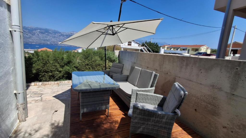 Našim gostom sta na voljo 2 popolnoma ločena apartmaja, parkirišče in celoten vrt. Na vrtu je poseben objekt z žarom in zunanjim tušem. Apartma ponuja čudovit razgled na morje in goro Velebit, plaža pa je oddaljena le 3 minute hoje.