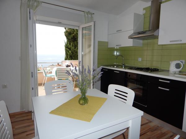 Bivanje v tem apartmaju je bilo prava poslastica. Apartma je izjemno lep, brezhibno čist in opremljen z vsem, kar potrebujete za prijeten dopust. Gostitelja sta izjemno gostoljubna, vedno na voljo, če kaj potrebujete, a hkrati nevsiljiva in diskretna. Terasa s čudovitim razgledom na morje naredi poseben vtis. Idealen kraj za jutranjo kavo ali večerno sprostitev. Plaža je oddaljena le dve minuti hoje, kar nam je popolnoma ustrezalo. Zagotovo se bomo še vrnili.