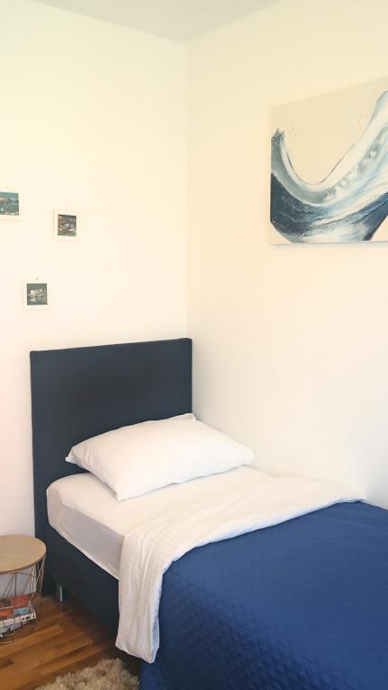 Oddam udoben apartma za do 4 osebe, ki se nahaja v Čavlah pri Reki. Apartma je le 6 km od centra Reke. Nahaja se v prvem nadstropju (ulična stran), apartma obsega 75 m² in vsebuje 3 spalnice: • 1 spalnica z zakonsko posteljo (160x200 cm) • 2 spalnici z enojnima posteljama (90x200 cm vsaka) Popolnoma opremljena kuhinja vključuje vso potrebno posodo, pomivalni stroj, pečico, električni štedilnik s 4 gorilniki, kot tudi mizo s 4 stoli. Kopalnica je opremljena s pralnim strojem, straniščem in kadjo. Dnevna soba nudi udoben prostor s satelitsko TV z ravnim zaslonom. Dnevna soba se odpira na 10 m² veliko teraso, idealno za sprostitev ali uživanje ob jutranji kavi. Apartma ima brezžični dostop do interneta in klimatsko napravo v dnevni sobi. Pred hišo je zagotovljeno parkirišče za 1 do 2 avtomobila. Najbližja plaža v Reki (Plaža Pećine) je oddaljena le 8 km. Center Čavli je od apartmaja oddaljen le 300 m.