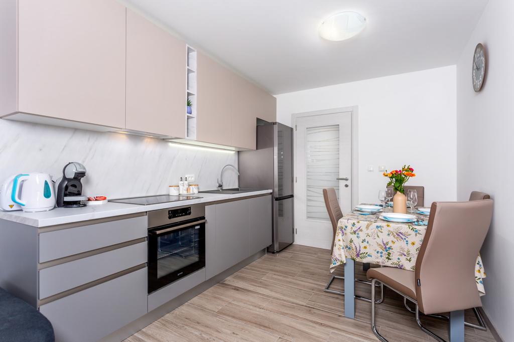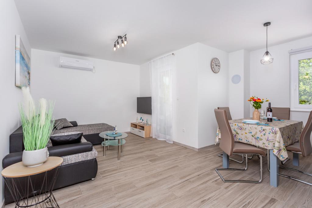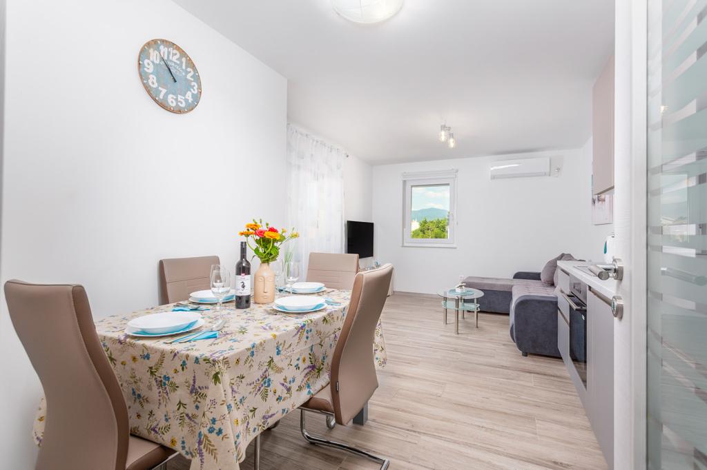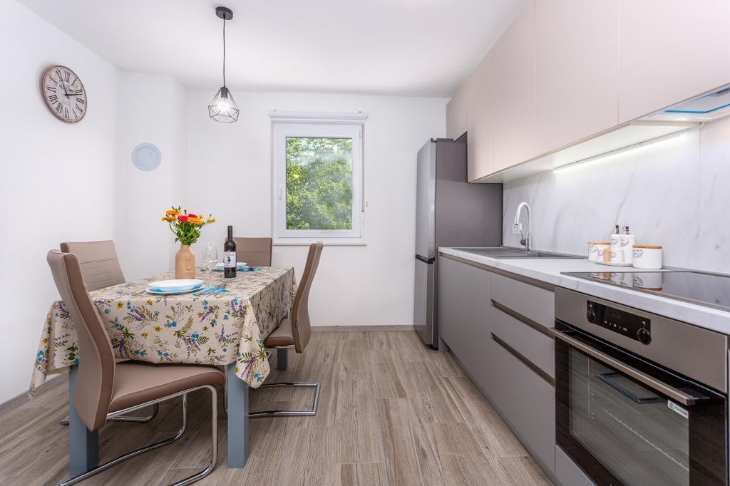 Uživajte v razgledu in se sprostite v naših popolnoma novih apartmajih, ki se nahajajo v mirni vasici. Naša lokacija je odlično izhodišče za enodnevne izlete v Istro, kvarnerske otoke ali okoliške gorske pokrajine. Le kratka vožnja vas loči od lokalnih plaž, gozdnih pohodniških poti ali središča mesta. Najlažji način za premikanje je z avtomobilom, vendar je javni mestni avtobus oddaljen približno 8 minut hoje. Apartmaji so oddaljeni 5 minut vožnje od avtoceste, ki vas hitro poveže s celim Kvarnerjem, Gorskim Kotarjem in Istro. Supermarket je oddaljen 2 minuti vožnje, najbližja plaža pa 10-15 minut.