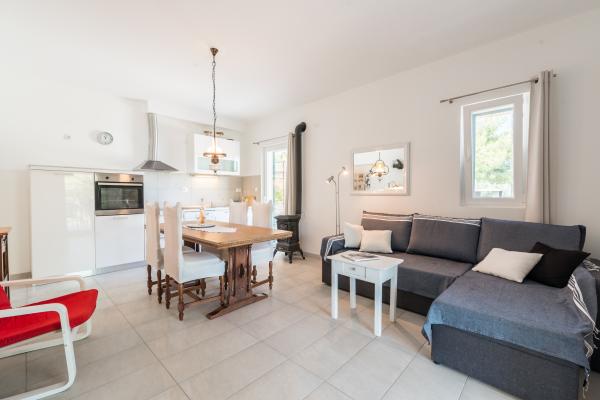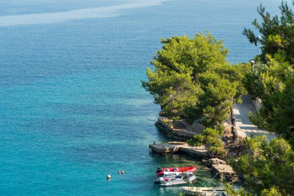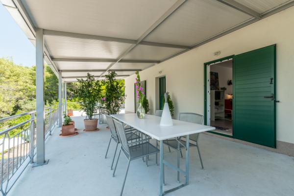 Popolnoma opremljeni in moderni apartmaji s teraso in pogledom na morje, ob morju, ki se nahaja na mirni lokaciji v zalivu Rogač na otoku Šolta. Apartmaji so sestavljeni iz prostorno dnevno sobo s kuhinjo, dve spalnici in kopalnico. Kristalno čista voda apartmaja je le 50 m.