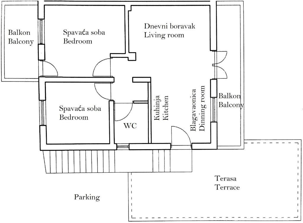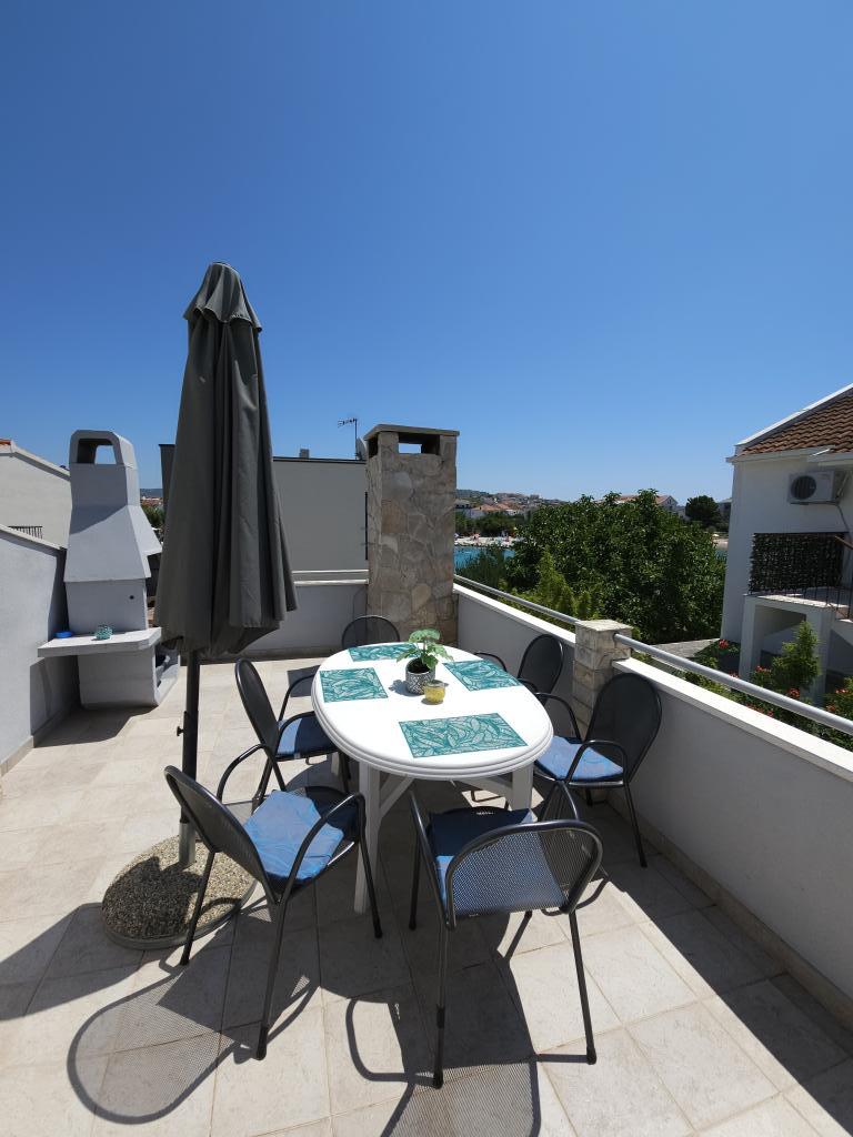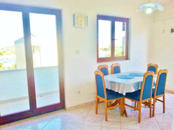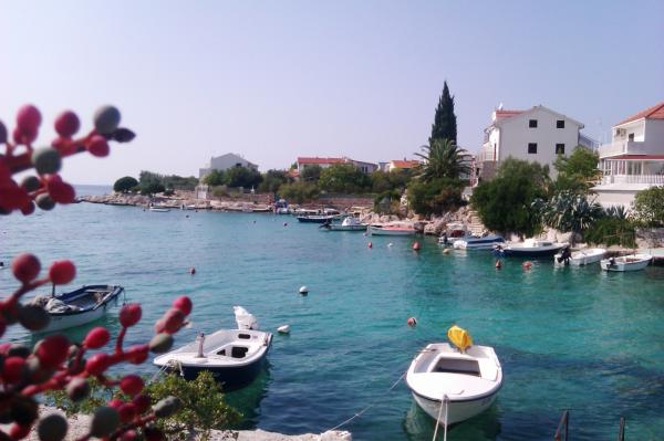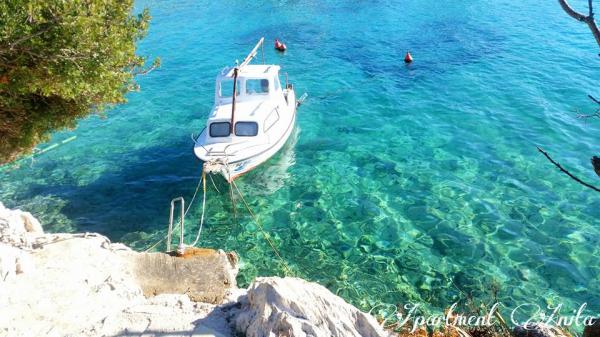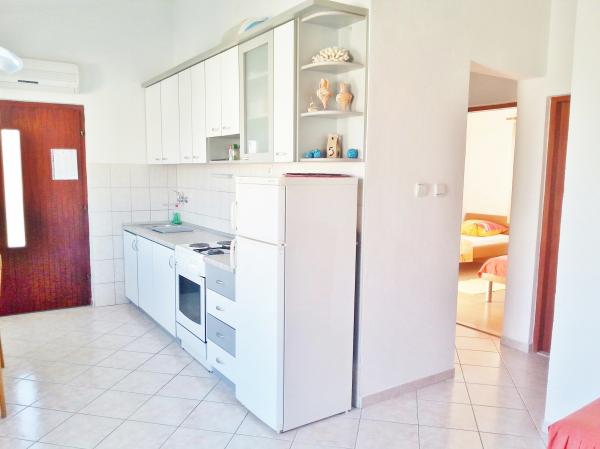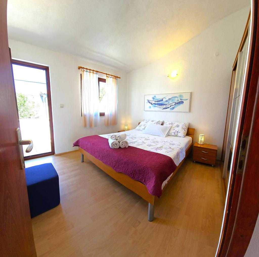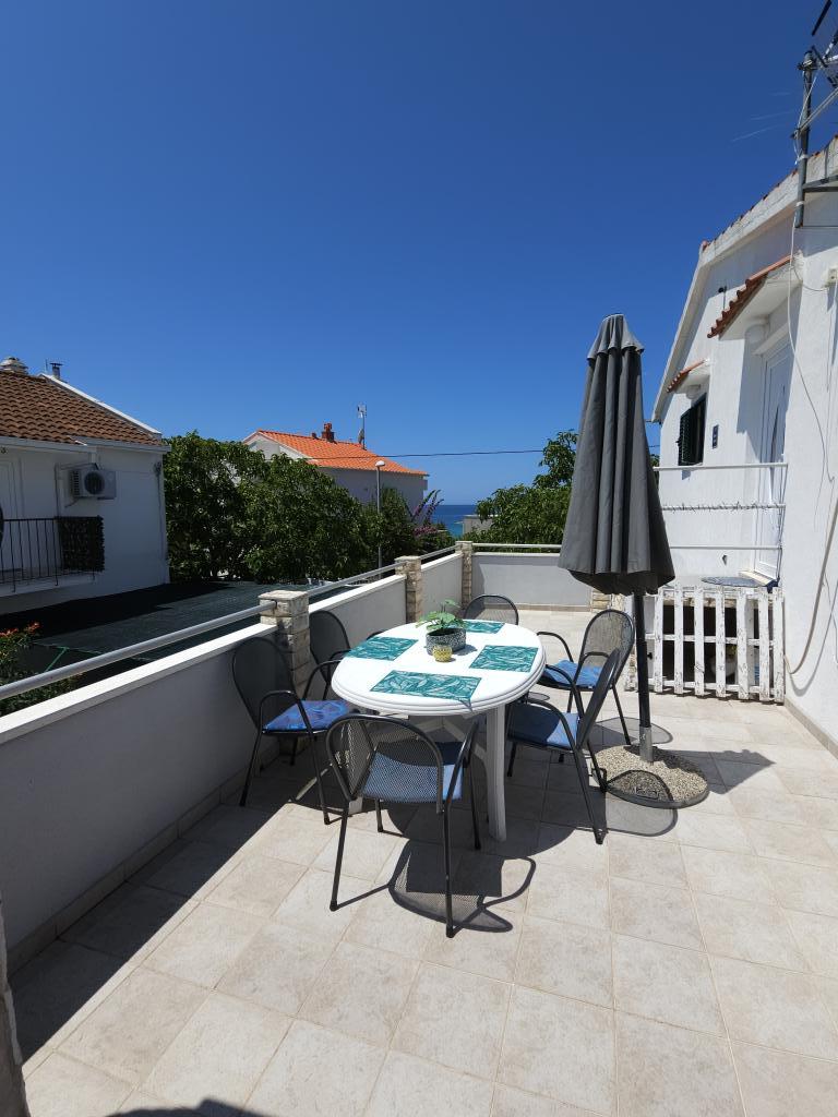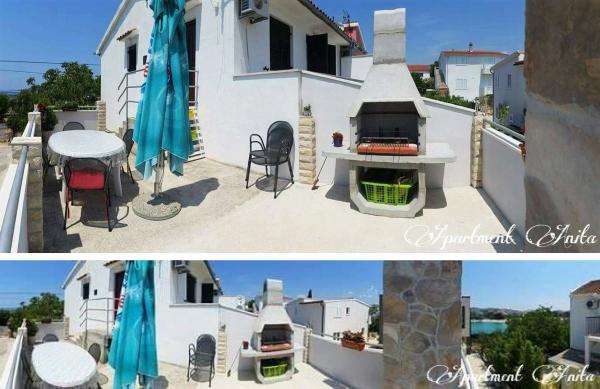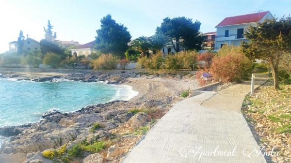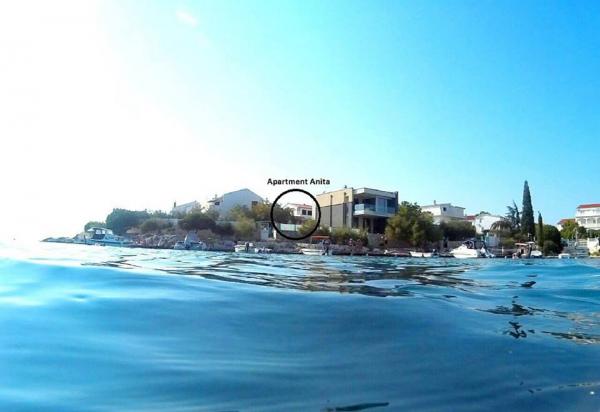 Apartma Anita se nahaja v mirnem okolju. V prvem nadstropju boste imeli čudovit pogled na morje z vseh treh strani apartmaja in ne na glavni cesti. Apartma je 65 m2 in ima dva balkona in teraso. Apartma ima dve sobi (ena je dvoposteljna soba, druga ima dve enojni postelji), kopalnico, kuhinjo in udobno dnevno sobo s klimo in pametno satelitsko televizijo. Apartma na vhodu ima veliko teraso s senčnikom, sedežno površino in žarom. Apartma ima brezplačen internet. Eno parkirno mesto je pred hišo. Oddaljenost od morja in plaže je 20 m, najbližja trgovina pa je 100 m. Različne plaže so od prodnate do skalnate in betonirane. Najlepši so kamenčki, kjer lahko najdete naravno senco dreves ali če želite, lahko uporabite naše sončnike za plažo.