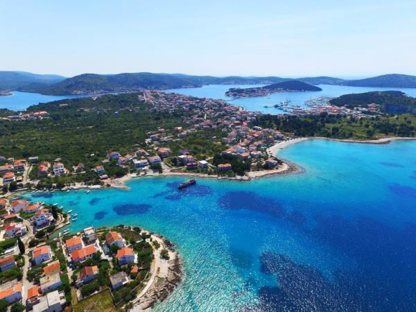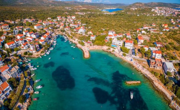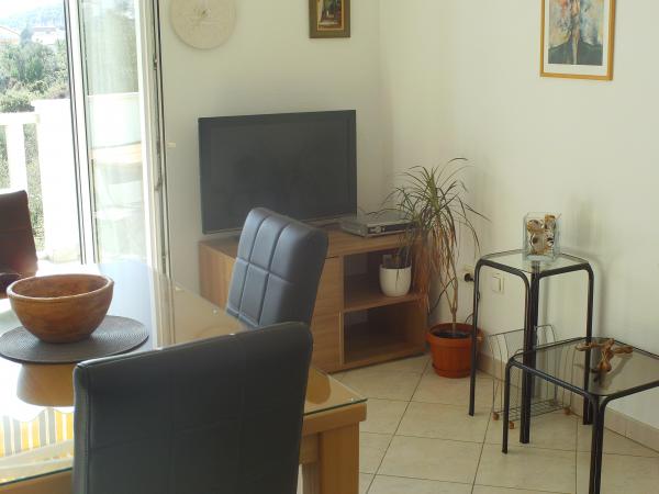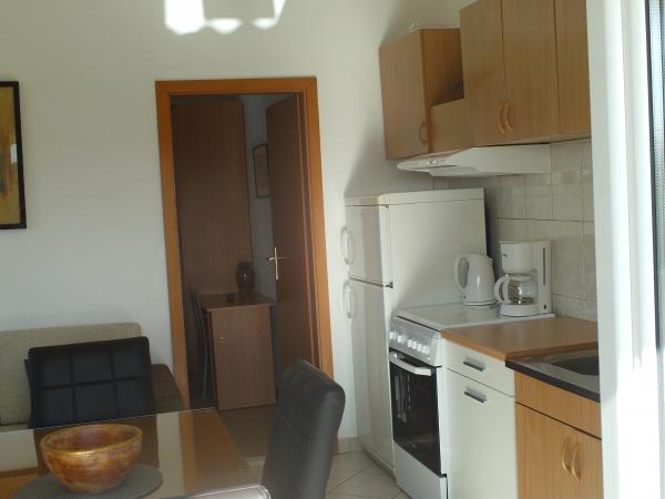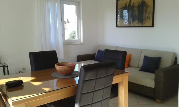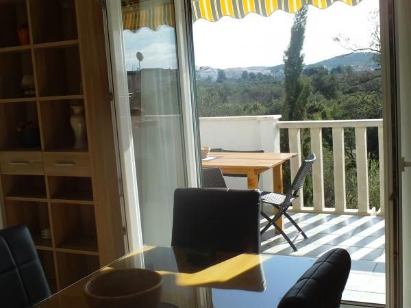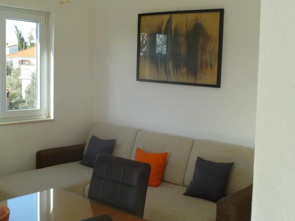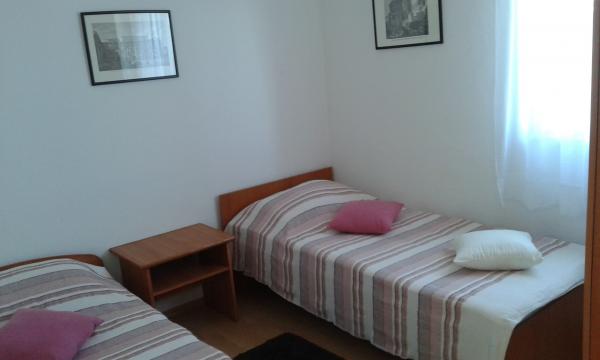 Stanovanje, ki zaseda celotno prvo nadstropje v družinski hiši, z ločenim vhodom. Lastniki so rezidenti v pritličju. Okoli hiše je velik vrt z *** *** travnik, od katerega del uporablja le gostom. To je vključevalo velik žar z mizo in stoli, zunanji tuš in parkiranje. Stanovanje ima 60 kvadratnih metrov notranjih površin in teraso 15 kvadratnih metrov, z zelo lepim razgledom. *** Obstajajo 3 spalnice (2 sobi z eno veliko posteljo za 2 osebi in 1 soba z 2 ločenima ležiščema) ***, dnevna soba, velika terasa s tendo in mizo za 6 oseb, kuhinja, kopalnica s tušem in pralni stroj. Kuhinja je založena štedilnik, plin in elektriko, grelec kuhinja vode, hladilnik, pečica, Kazan in aparat za kavo. V dnevni sobi je kavč, ki pretvarja v posteljo za dve dodatni osebi, jedilna miza, TV in klimatsko napravo. Free WiFi je prav tako vključena!