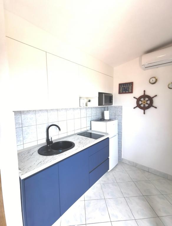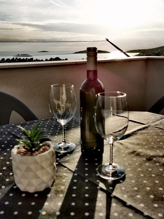 Apartmaji Antonio so lepo urejeni. Imajo čudovit pogled na morje in otoke.Nahajajo se v zasebni hiši v 2. in 3. nadstropju. Hiša se nahaja v mirnem okolju. Oddaljenost od morja je 90m, prav tako od centra. Nacionalni park Krka je oddaljen 40 km, mesto Šibenik je oddaljeno 35 km, mesto Split pa 50 km.