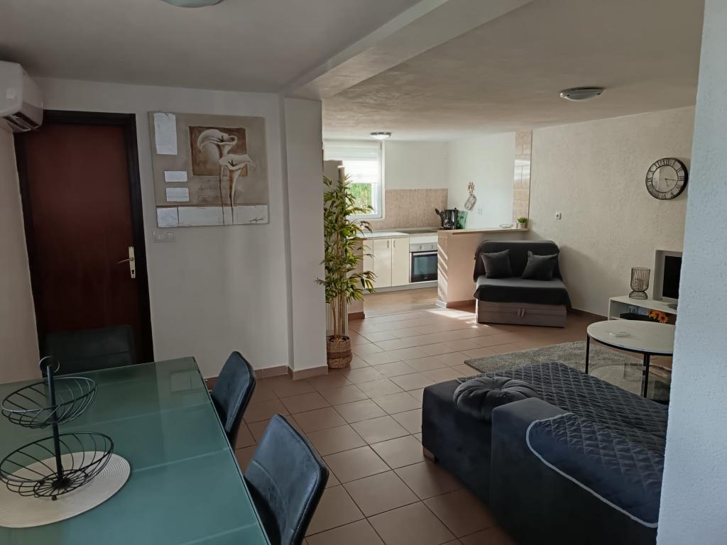 Turistična taksa je vključena v ceno.Prostoren in lepo urejen apartma z dobro opremljeno kuhinjo. Velika terasa s pogledom na morje. Plaža primerna za otroke na 2 min hoje.