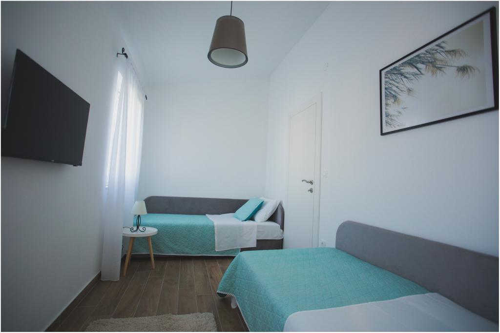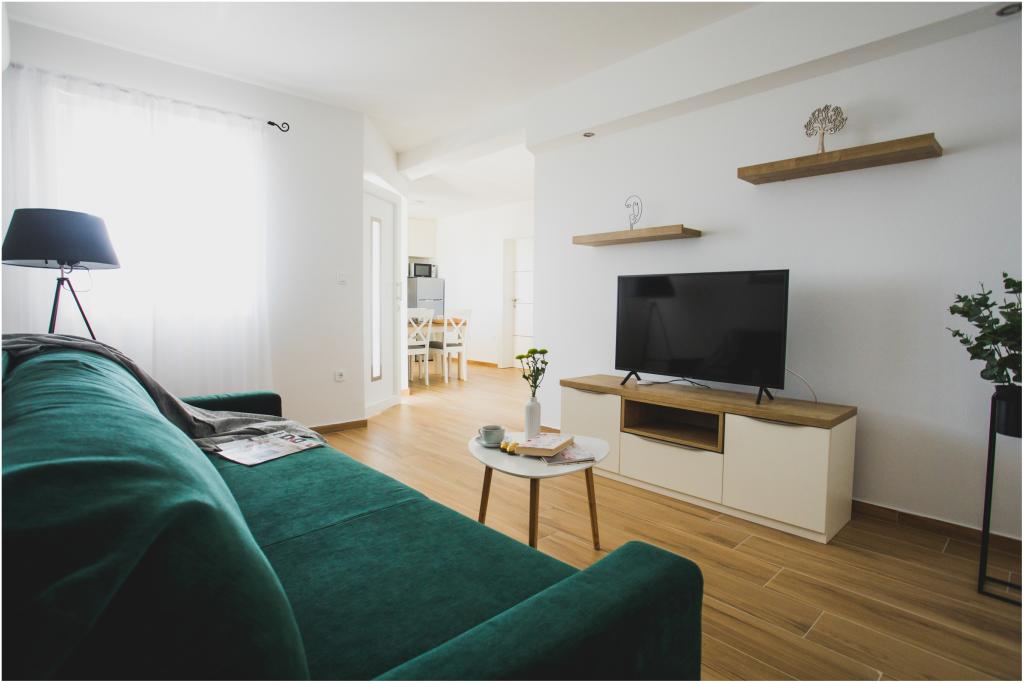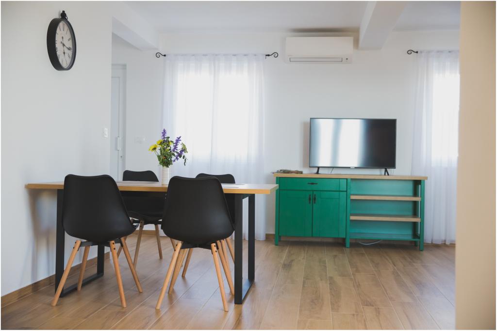 Tu smo preživeli 12 dni. Stanovanje je lepo, odlično opremljeno in zelo prostorno. Raztegljiv kavč je udoben. Čudovit pogled na morje. Gostiteljica je prijazna in vedno na voljo. Menjava posteljnine in brisač sredi bivanja. Nekaj korakov do morja in zagotovo najlepših plaž v okolici. Bazen je super osvežujoč. Hvala za lepe počitnice.