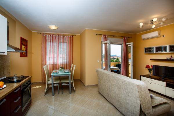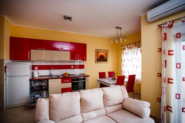 Popolnoma opremljeni in moderni apartmaji v mirnem delu Rogoznice so idealni za oddih vas in vašo družino. Apartmaji se nahajajo 70m od morja. Veselimo se srečanja z vami!