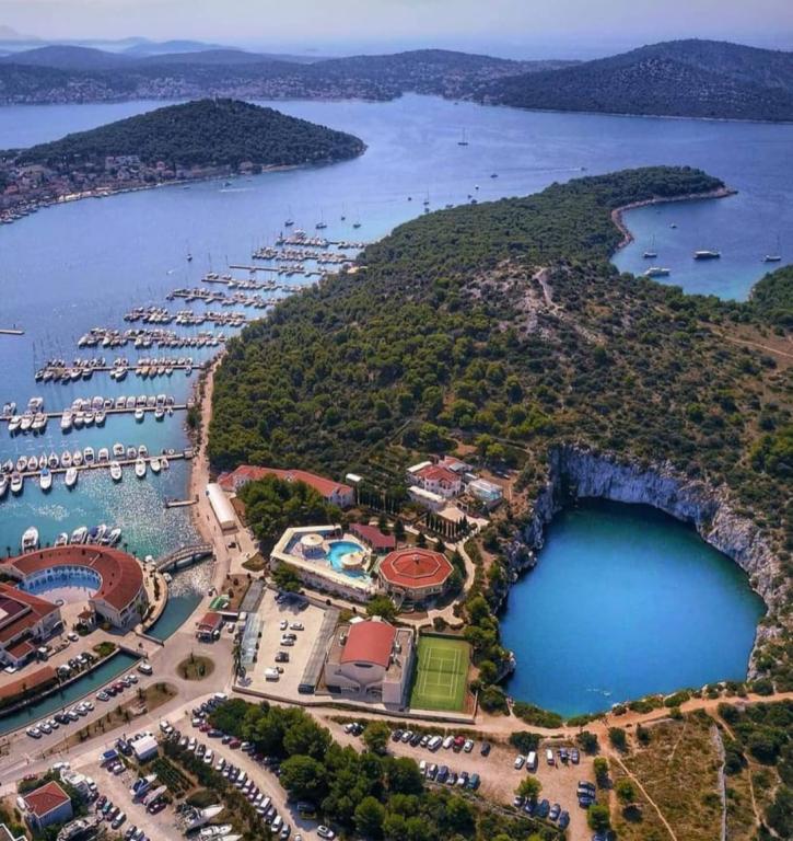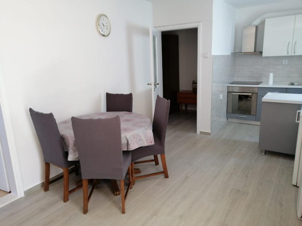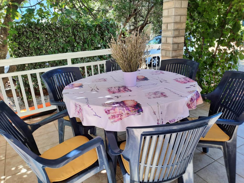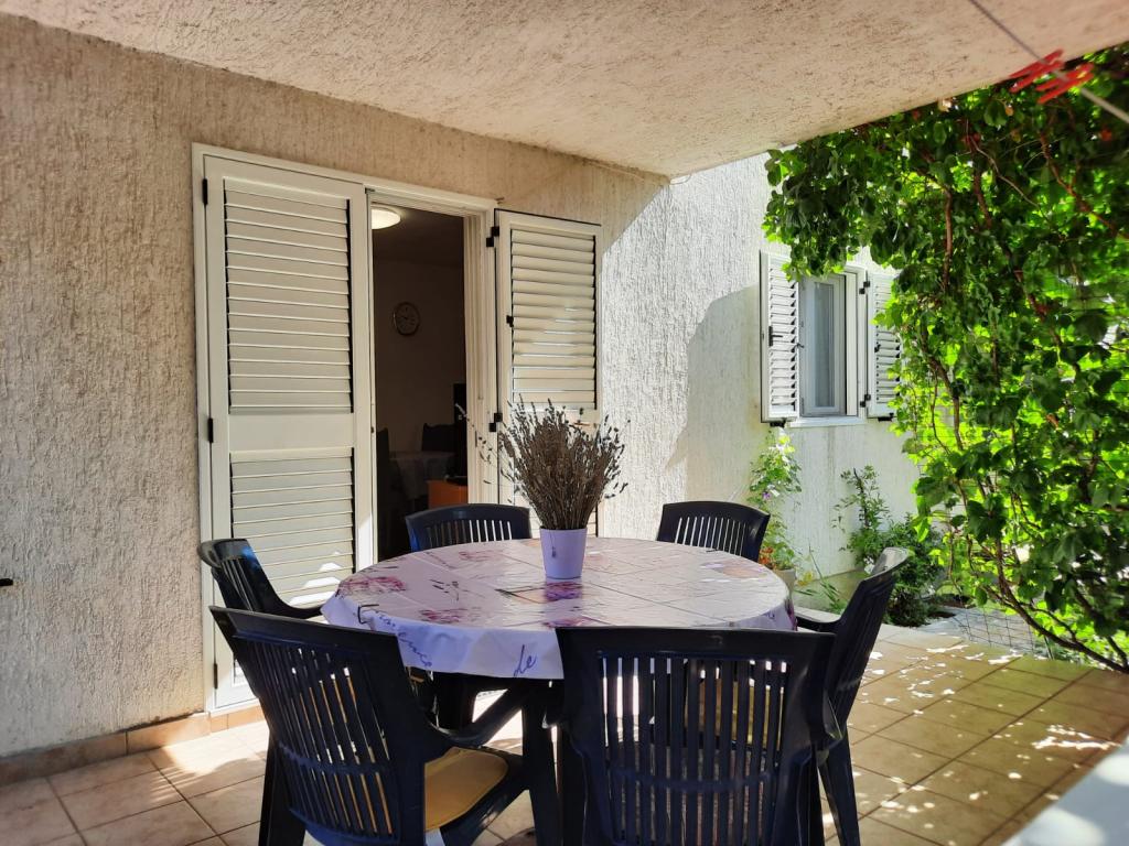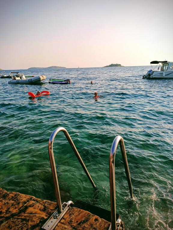 Apartmaji se nahajajo v mirnem vikend naselju, primernem za družinske počitnice. Plaža je betonska, skalnata in prodnata v senci, primerna za majhne otroke. V bližini je restavracija "Punta".