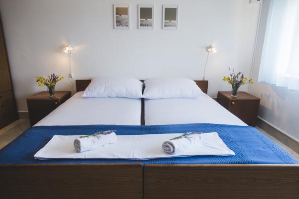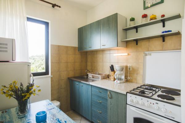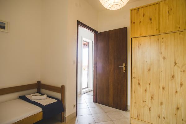 Apartmaji Maslina se nahajajo v družinski hiši, popolnoma opremljeni, s pogledom na morje in možnostjo uporabe žara. Dvorišče je okrašeno z živahnim vrtom, polnim sredozemskih zelišč (fige, oljke, rožmarin, sivka, vinska trta ...), v katerih prevladujejo stotisletne oljke. Apartmaji imajo klimatsko napravo in oddaljenost od morja je le 70 metrov. V neposredni bližini objekta je lastno parkirišče. Južno stanovanje sestavljajo dve spalnici, popolnoma opremljene kuhinje, kopalnice in prostorne terase z neoviranim pogledom na morje. Severni apartma obsega predprostor, sobe, popolnoma opremljene kuhinje, kopalnice in manjše terase s pogledom na morje. Ponujamo možnost, da povežemo ladjo z mrtvim telesom. Privoščite si počitnice v čudovitem okolju, v čistem morju in lepih sončnih zahodih.
