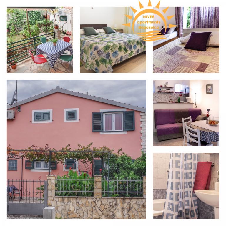 Zadnjih 10 dni junija 2021 smo preživeli v apartmaju Nives, velikem in udobnem apartmaju za 5 oseb z dvema spalnicama, kopalnico, dnevno sobo in kuhinjo. Poleg tega zelo velika, udobna terasa v senci rastlin, ki rastejo na lepem vrtu. Na vrtu je žar s pokrito zunanjo kuhinjo in jedilno mizo. Apartma je popolnoma opremljen, tudi z likalnikom in mešalnikom. Razdražljivi, gostoljubni lastniki so nas sprejeli z rakijo in hladnim pivom. Nekaj minut hoje do plaže, pa tudi do mesta. Priporočamo!