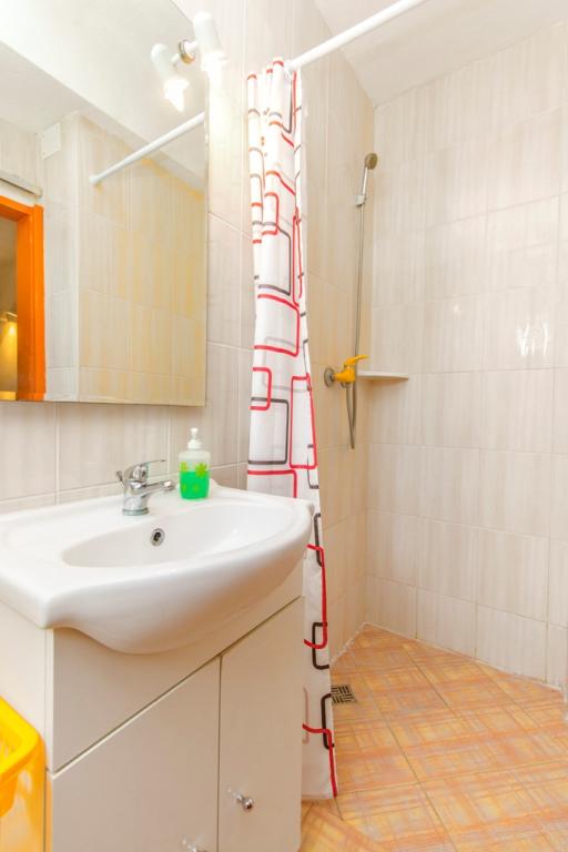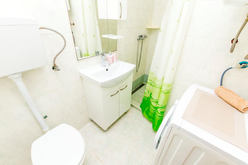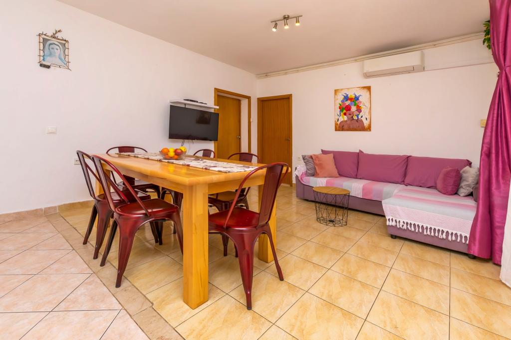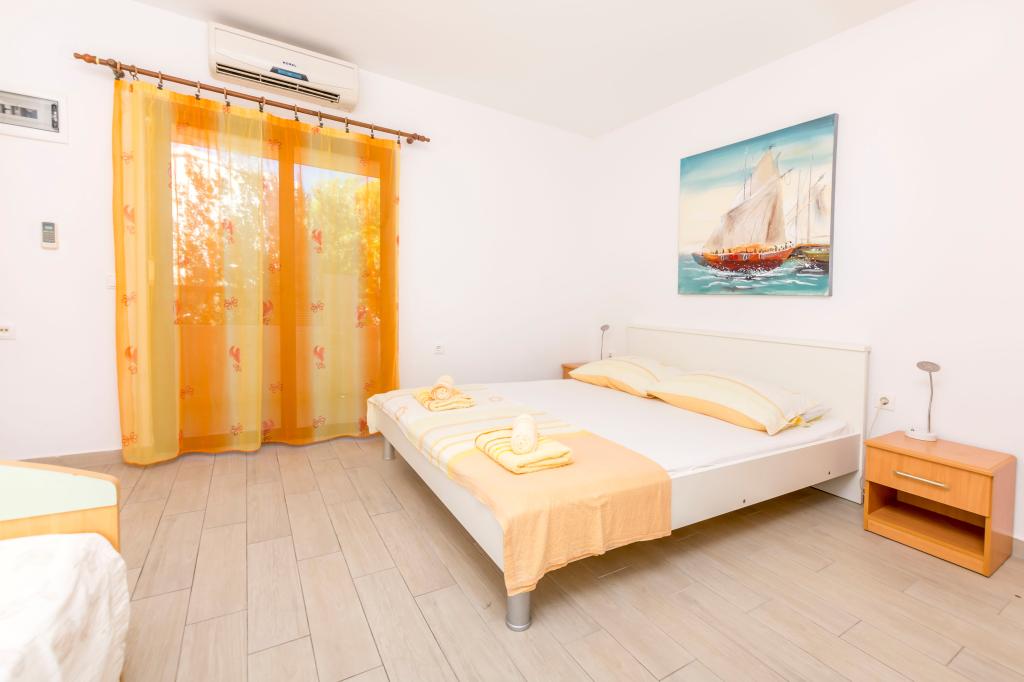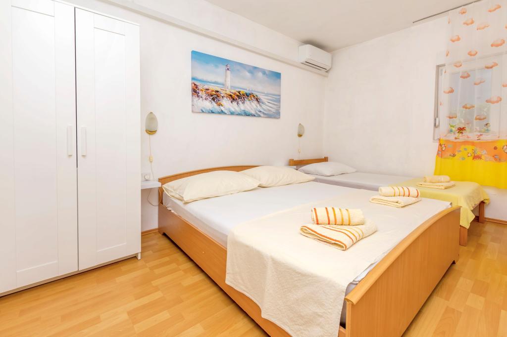 Opremljeni apartmaji s 3 zvezdicami. Apartma A-8 1, pritličje, primerno za invalidske vozičke, velika terasa, 3 klimatske naprave, 2 stranišča, plaža, oddaljena 40 m, primerno za otroke, velik vrt, žar, zunanji tuš, parkirišče zaščiteno pred soncem. Čudovita promenada ob morju, od apartmaja do centra (približno 2000 m). Hišni ljubljenčki po dogovoru. Za naše turiste organiziramo transfer letališče Split - Rogoznica. Urejene kolesarske steze, približno 100 km. Mir, tišina, blaga klima, sonce, sprehod ob morju, počitek za dušo in telo. Dragi prijatelji, mi smo najbližje toplemu morju, dobrodošli pri nas! Apartma A9, 1. nadstropje, velik balkon, čudovit pogled na morje, 2 manjša balkona, 3 klimatske naprave, 3 stranišča, žar, parkirišče. Dobrodošli pri nas!