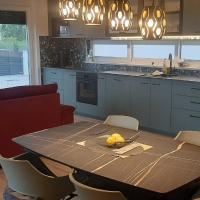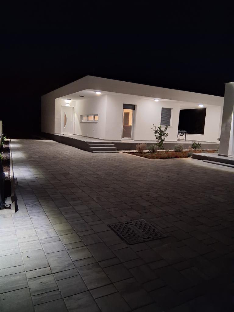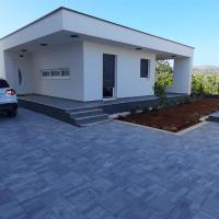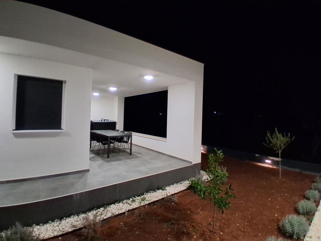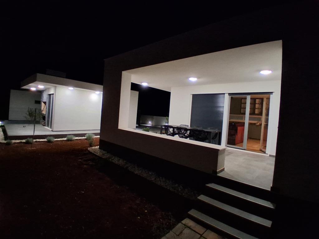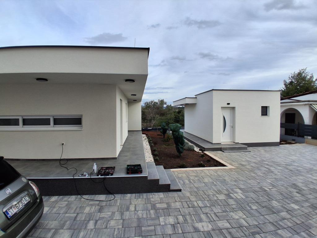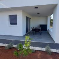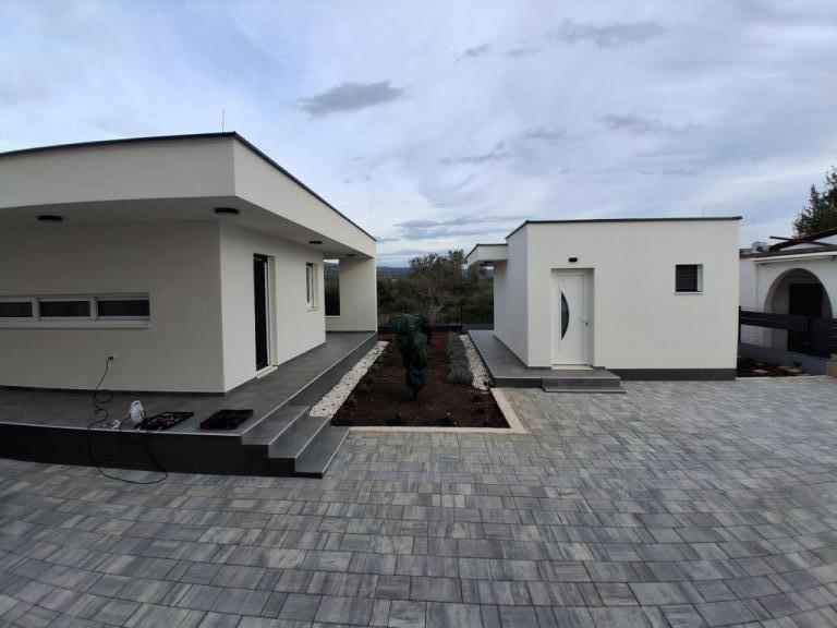 Nova enonadstropna hiša z bivalno površino 70 kvadratnih metrov s pokrito teraso velikosti 30 kvadratnih metrov se nahaja na mirni lokaciji, stran od ceste, s pogledom na oljčni nasad. Prostorna terasa je zaščitena pred pogledi sosednjih hiš in zagotavlja zasebnost. Plaža je v hoje oddaljena le nekaj minut od nepremičnine. Zasebno parkirišče je zagotovljeno za tri avtomobile. Ima dve klimatizirani spalnici (1. velika zakonska postelja, 2. dve enojni postelji), prostorno klimatizirano dnevno sobo s kuhinjo in jedilnico, veliko kopalnico z WC-jem. Hiša je opremljena z vsem novim pohištvom in aparati, pametnim televizorjem, teraso z veliko mizo za 6 oseb.