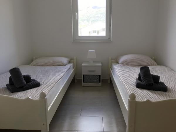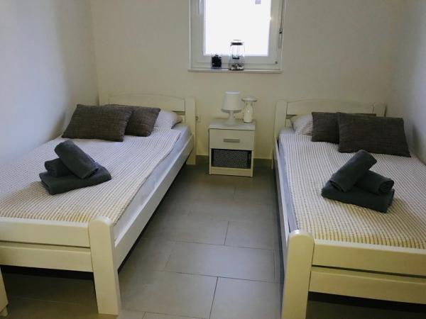 Lepa Rovanjska se nahaja v zalivu na koncu kanala Velebit, v bližini Zadra. Bližina Velebita bogati to mesto parkih, jame, poti in kolesarske steze. Modrić jamo bogastvo ob vznožju Velebita, in cerkev sv .. Jurija v središču mesta je staro hrvaško verske arhitekture. V bližini je Nacionalni park Paklenica 8 km, Narodni park Plitviška jezera približno 95 km, ter Nacionalni park Krka, v daljavi je približno 85 km. Apartmaji se nahajajo 200 m od avtobusne postaje, 400 m od plaže, 30 km od letališča in trajektnega pristanišča v Zadru. S terase ponuja čudovit pogled na morje in še posebej lep sončni zahod. Apartmaji so moderno in popolnoma opremljeno.
