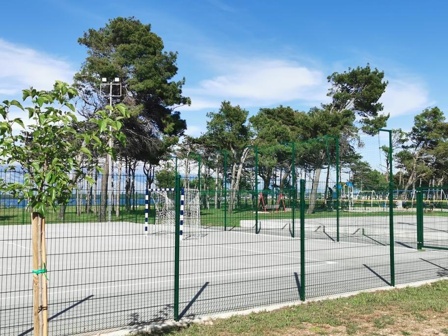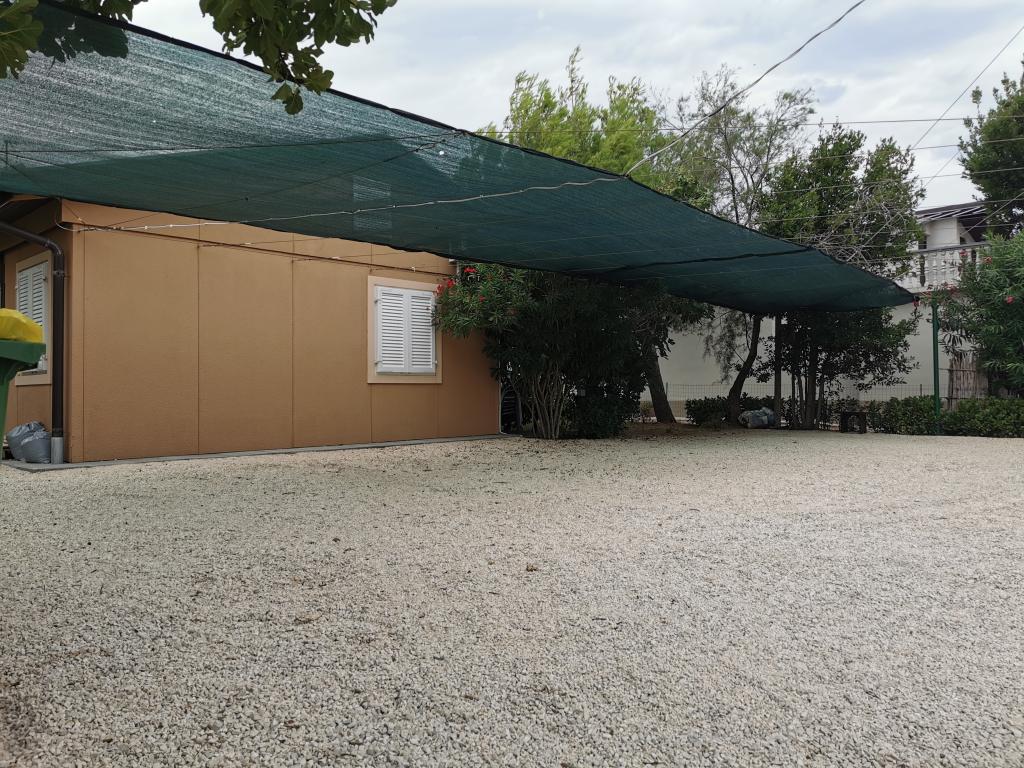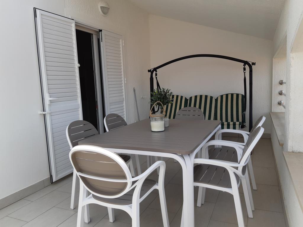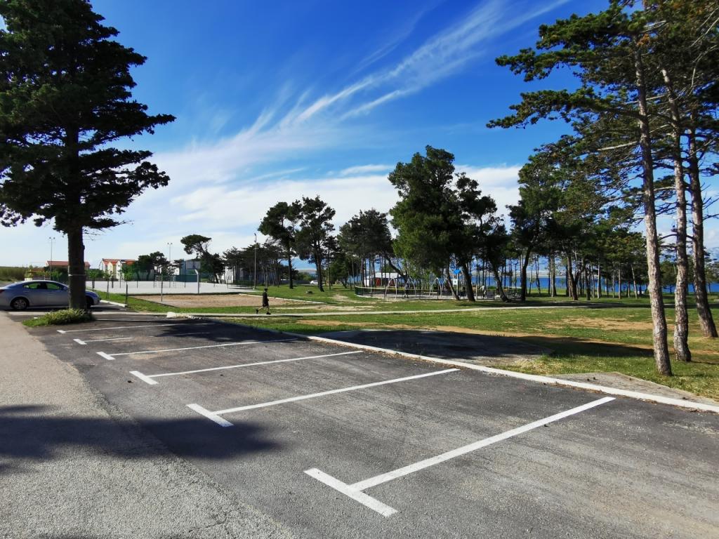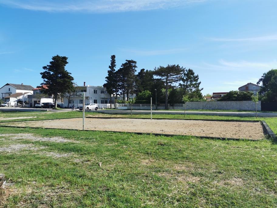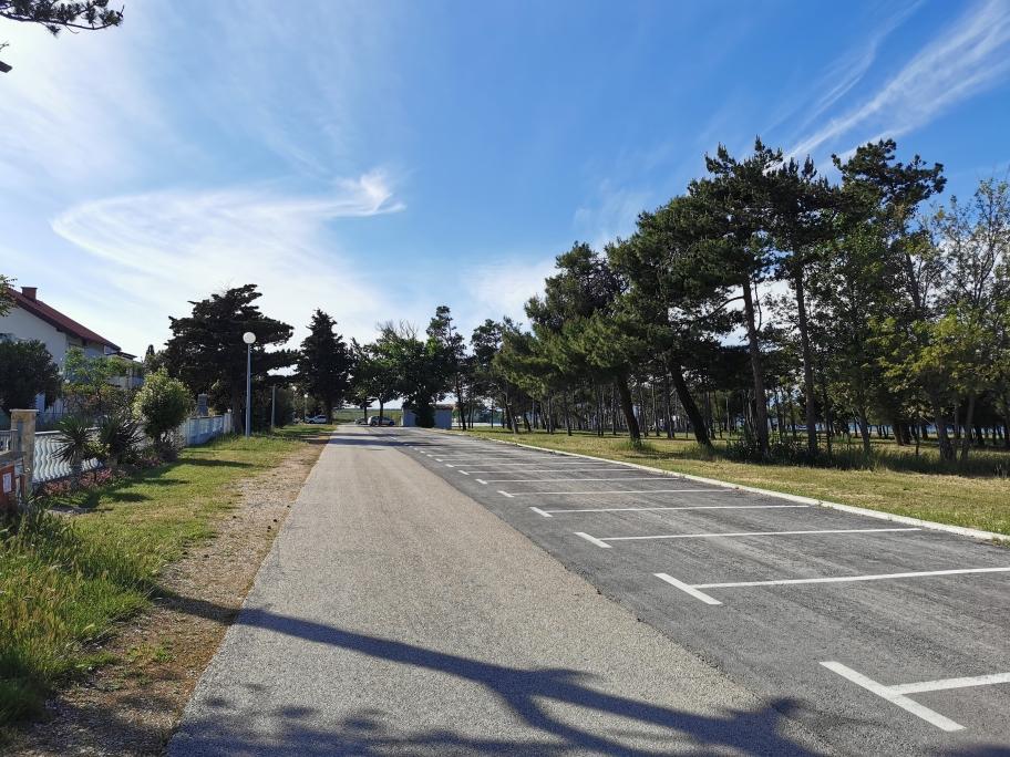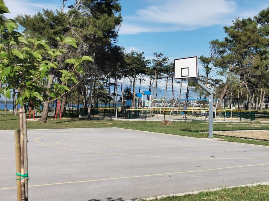 Na novo in moderno urejeni apartmaji. Lokacija v naselju - prva vrsta do morja. Apartmaji z dvema spalnicama (ena z zakonsko posteljo, druga z dvema ločenima), kuhinjo z jedilnico, pokrito teraso, kopalnico z WC in tušem. TV, kuhalnik vode, mikrovalovna pečica, kuhalna plošča, pečica, hladilnik z malim zamrzovalnikom. Dvosed v jedilnici (pomožno ležišče za 2 osebi) ali v sobi z zakonsko posteljo (pomožno ležišče za 1 osebo). Promenada do centra vasi - trgovina, pekarna, sadjernica, kavarna, sladoled - 2 min hoje. Prva restavracija 50 m pred objektom je park in borov gozd s športnimi objekti ter ograjenim novim otroškim igriščem. Dva kavarna v parku. Zaprto dvorišče našega objekta. Klima, parkirišče pokrito z zaščitno mrežo, Wi-fi, pristojbine in takse, zunanji tuš in uporaba žara vključeni v ceno.