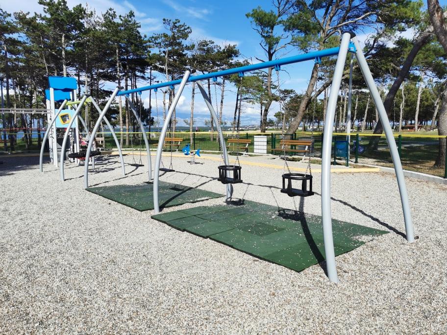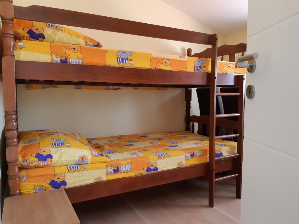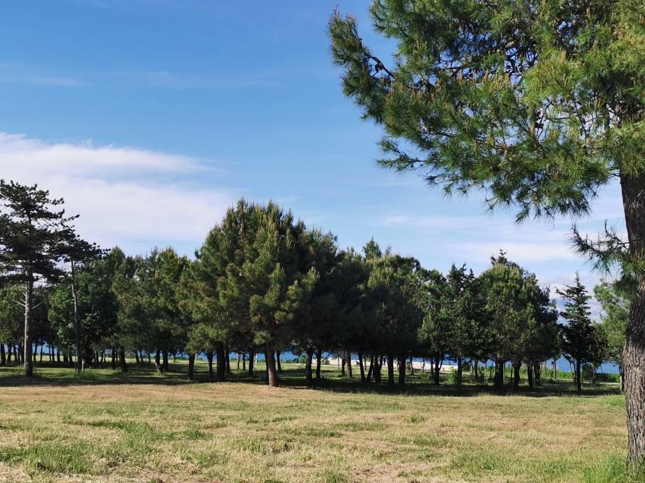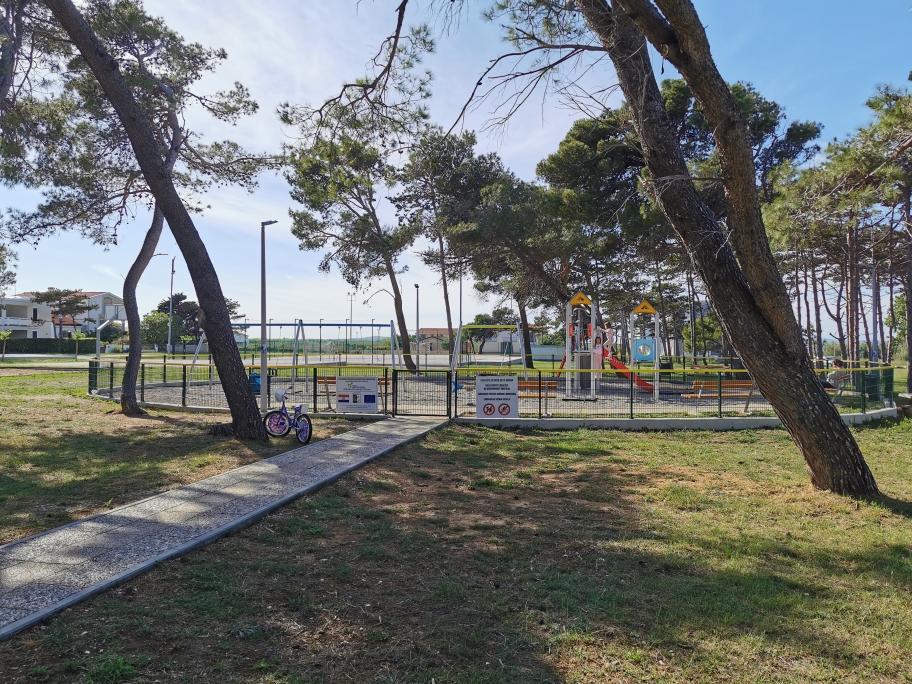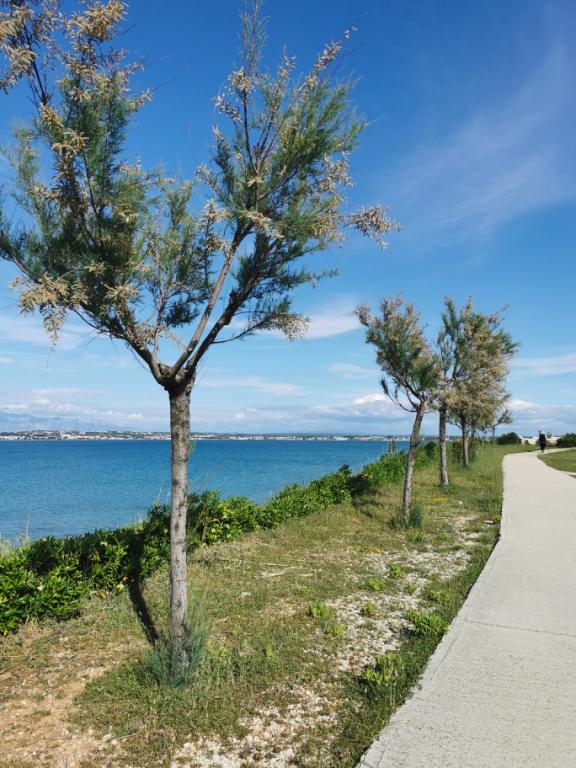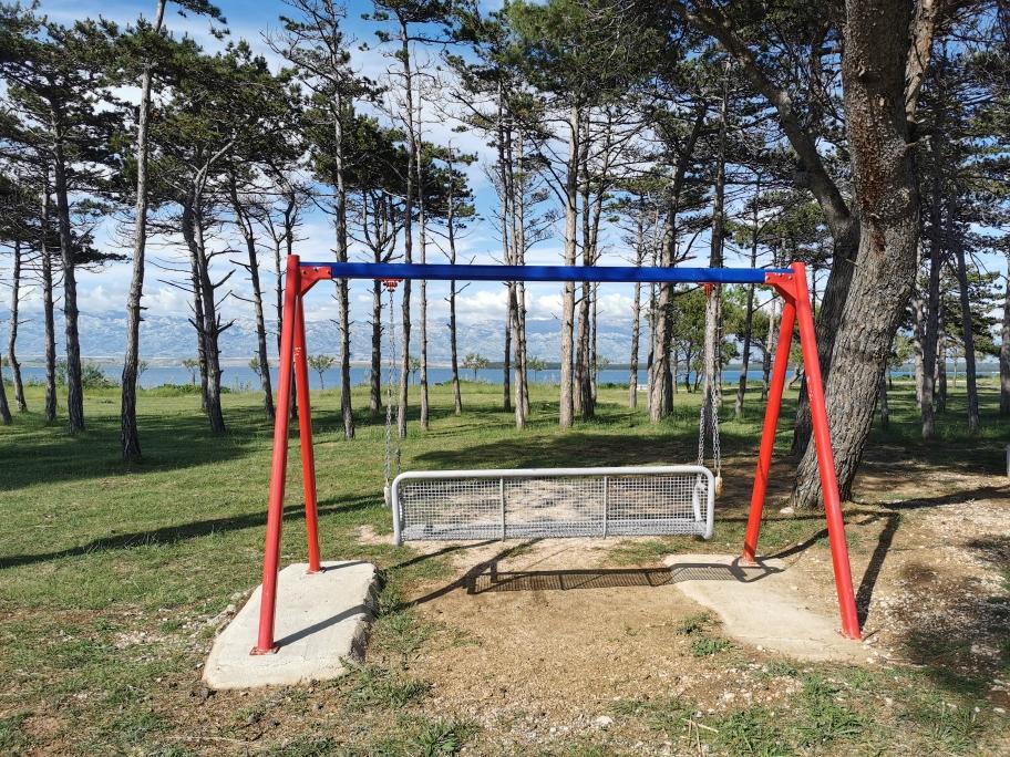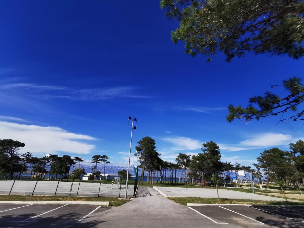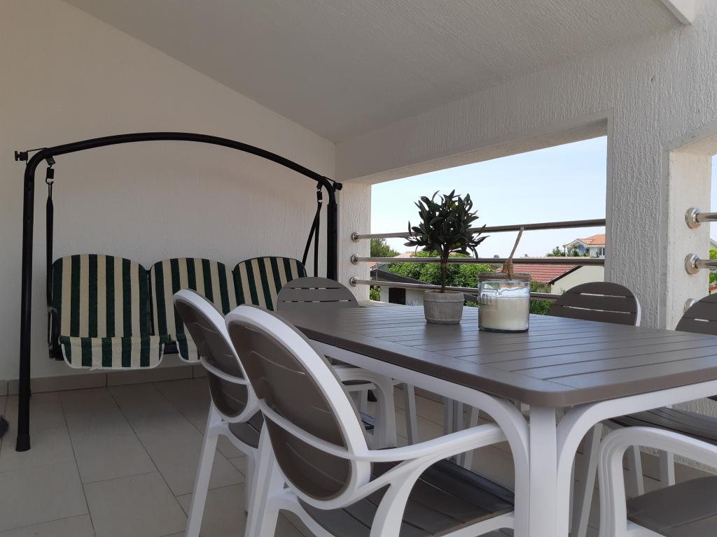 Na novo in moderno urejeni apartmaji. Lokacija v naselju - prva vrsta do morja. Apartmaji z dvema spalnicama (ena z zakonsko posteljo, druga z dvema ločenima), kuhinjo z jedilnico, pokrito teraso, kopalnico z WC in tušem. TV, kuhalnik vode, mikrovalovna pečica, kuhalna plošča, pečica, hladilnik z malim zamrzovalnikom. Dvosed v jedilnici (pomožno ležišče za 2 osebi) ali v sobi z zakonsko posteljo (pomožno ležišče za 1 osebo). Promenada do centra vasi - trgovina, pekarna, sadjernica, kavarna, sladoled - 2 min hoje. Prva restavracija 50 m pred objektom je park in borov gozd s športnimi objekti ter ograjenim novim otroškim igriščem. Dva kavarna v parku. Zaprto dvorišče našega objekta. Klima, parkirišče pokrito z zaščitno mrežo, Wi-fi, pristojbine in takse, zunanji tuš in uporaba žara vključeni v ceno.