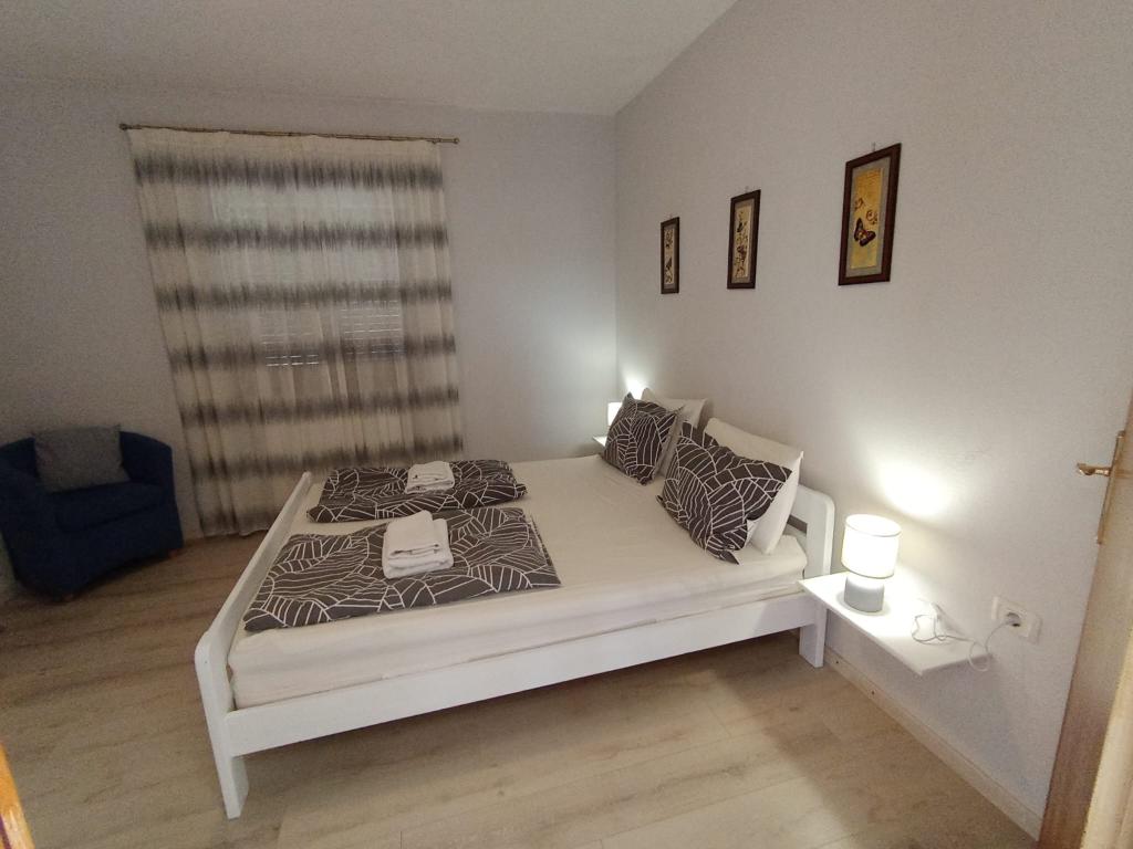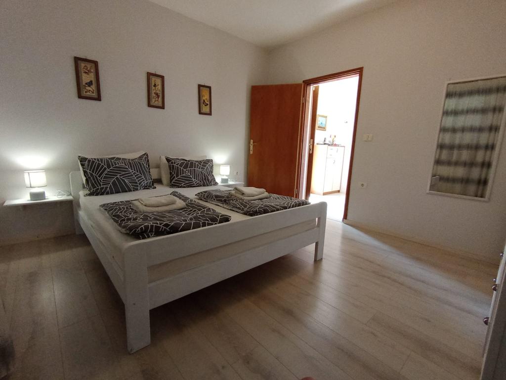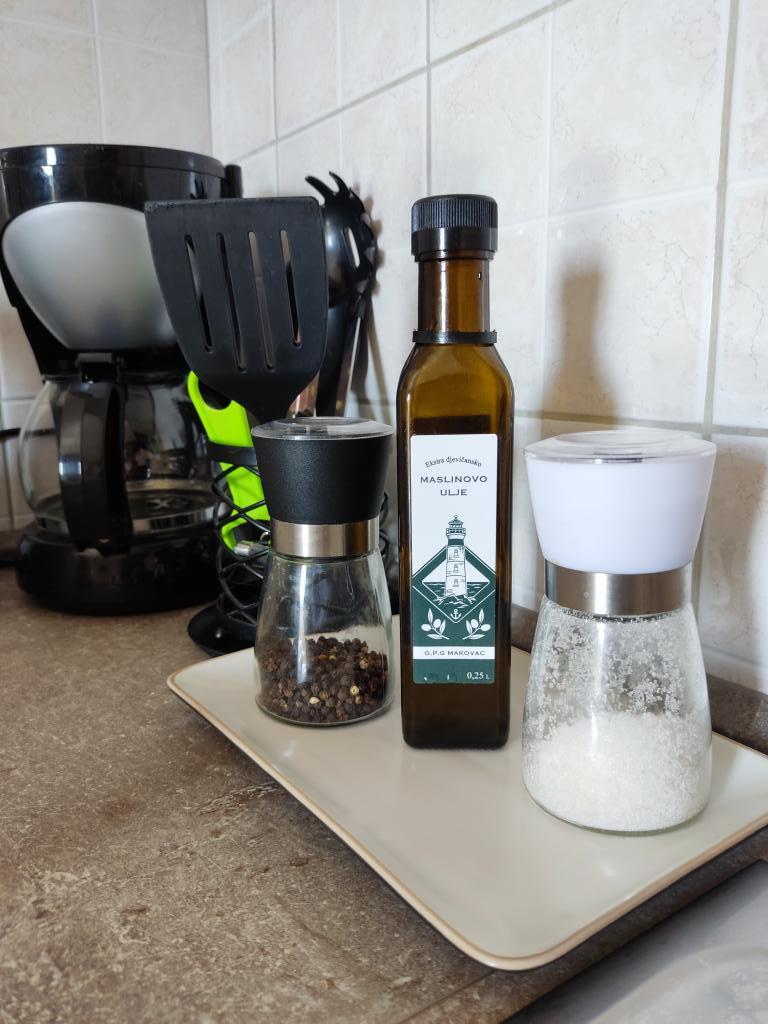 Apartma se nahaja na podeželju, v hoje oddaljenosti lahko kupite sveže sadje in zelenjavo, med, domača jajca ... 700 m od prve plaže. Ena spalnica z zakonsko posteljo in dodatnim raztegljivim kavčem z nadvložkom za dve dodatni osebi, z dvema terasama s pogledom na naravo in oljčni nasad, gostje pa lahko uživajo tudi v senci pod trto. Apartma smo opremili z vsem, kar menimo, da je potrebno za prijeten oddih: brisače, posteljnina, kuhinjska oprema, začimbe, ekstra deviško oljčno olje, olje, kis, aparat za kavo, moka, grelnik vode, opekač kruha, mikrovalovna pečica, pečica, pomivalni stroj, pralni stroj, sušilnik za lase, likalnik, klimatska naprava, toaletni papir, zavarovano parkirno mesto ... Kajenje je dovoljeno na terasah. Hišni ljubljenčki so dobrodošli. Smo mirna majhna družina, ki vas med počitnicami ne bo motila. Na voljo vam bosta le košara sezonskega sadja in zelenjave ter vrt s svežimi zelišči. Za vse dodatne informacije in želje smo vam na voljo, vprašajte :)
