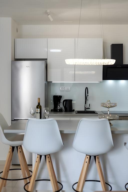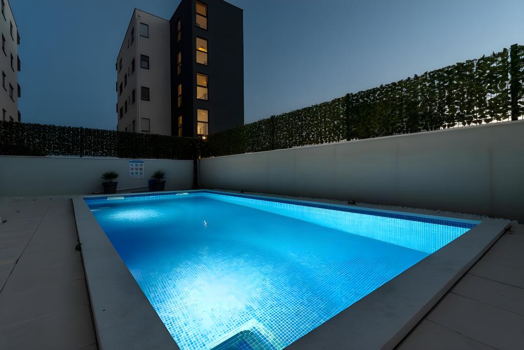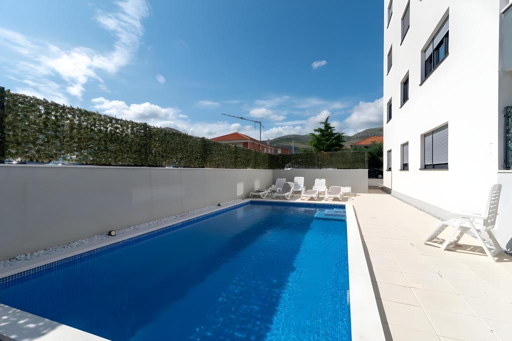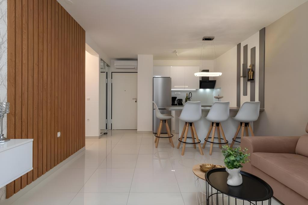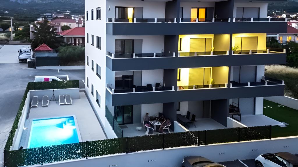 Namestitev se nahaja v moderni novi stavbi v mirnem in urejenem okolju, idealnem za sproščen in brezskrben oddih. Objekt gostom ponuja zunanji bazen v stavbi, ki je kot nalašč za uživanje v toplih dneh, in brezplačno parkiranje. Apartma je sestavljen iz spalnice z udobno zakonsko posteljo, dnevne sobe z raztegljivim kavčem, popolnoma opremljene kuhinje, kopalnice in balkona. Prostor je moderno opremljen s poudarkom na udobju in funkcionalnosti, kar ustvarja prijetno in sproščujoče vzdušje. Balkon še dodatno obogati prostor in ponuja idealen kraj za jutranjo kavo ali večerno sprostitev. Lokacija zagotavlja zasebnost in mir, hkrati pa omogoča enostaven dostop do vseh pomembnih ugodnosti v okolici, zaradi česar je ta namestitev idealna kombinacija sprostitve in praktičnosti.